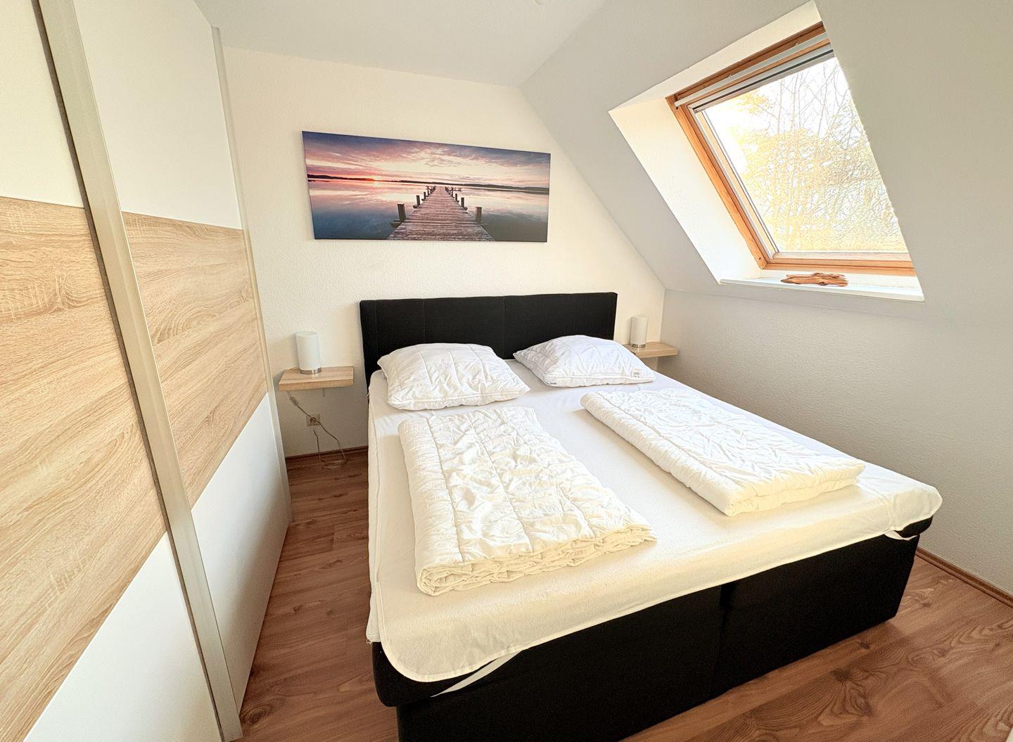 Die Wohnung ist ideal für 2 Personen geeignet und mit einem 180 x 200 cm Doppelbett ausgestattet. Dank der freundlichen Gestaltung ist sie zu jeder Jahreszeit ein perfekter Rückzugsort.