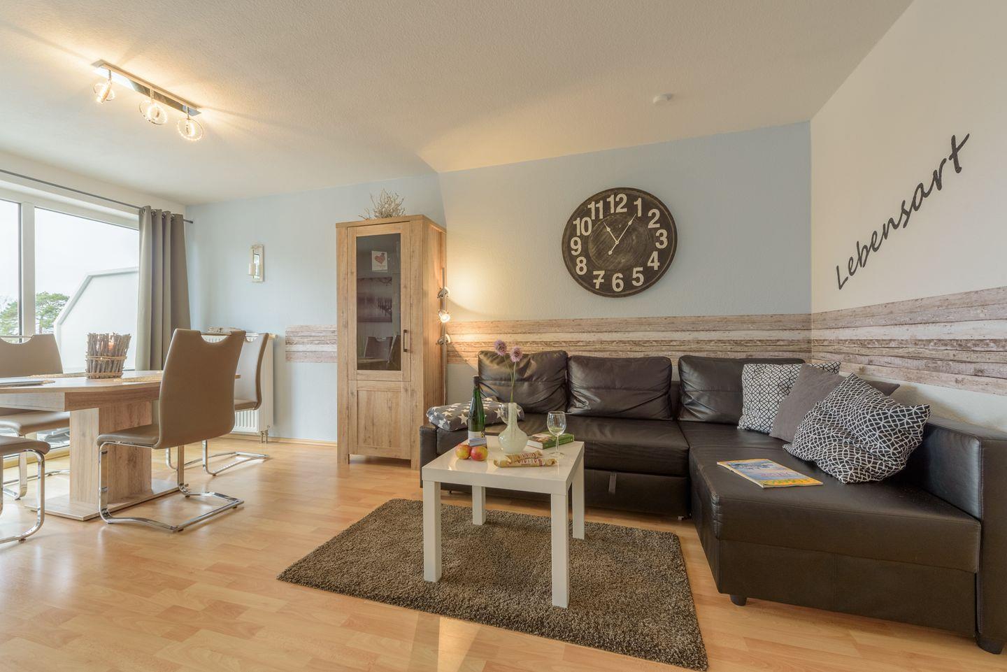 Die modern, hell und komfortabel eingerichtete Ferienwohnung Lebensart befindet sich im 2. Obergeschoss eines modernen Appartementhauses in der Strandstraße 8 in Baabe und ist bequem mit dem Fahrstuhl erreichbar. Vom schönen Balkon genießen Sie den Blick auf den Selliner See. WLAN steht Ihnen kostenlos zur Verfügung.