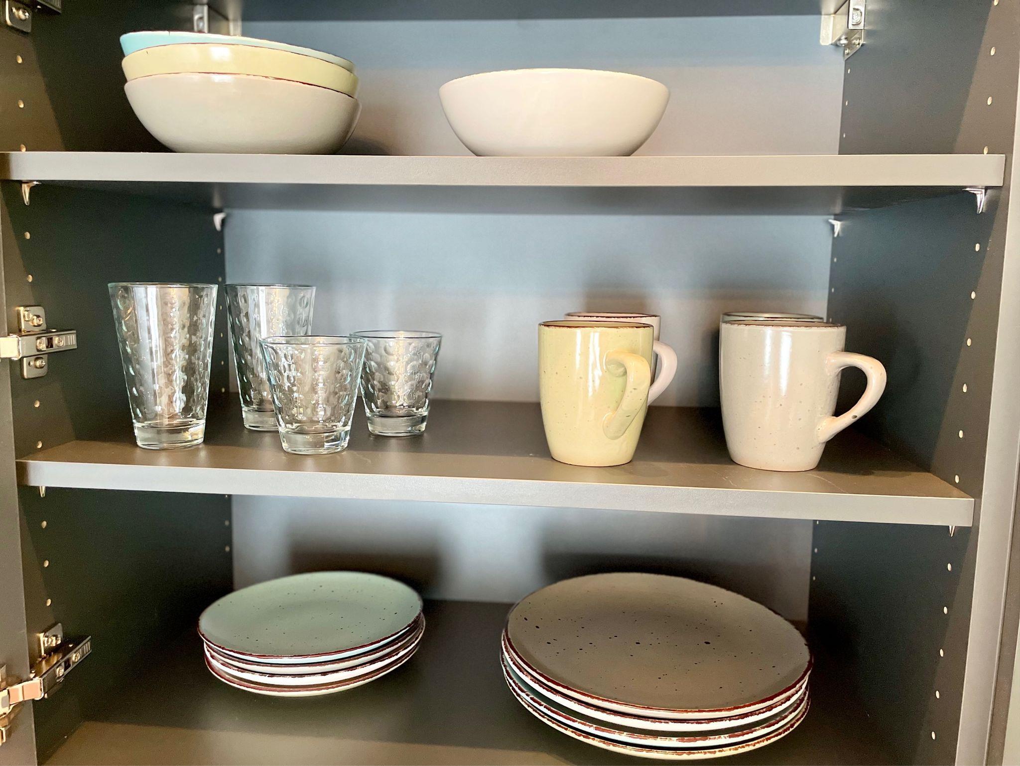 Zur Einrichtung gehört eine Küchenzeile mit Sitzgelegenheit, in der Sie alles finden was sie zum Kochen brauchen, inkl. Induktionsplatte, Mikrowelle und Kühlschrank.