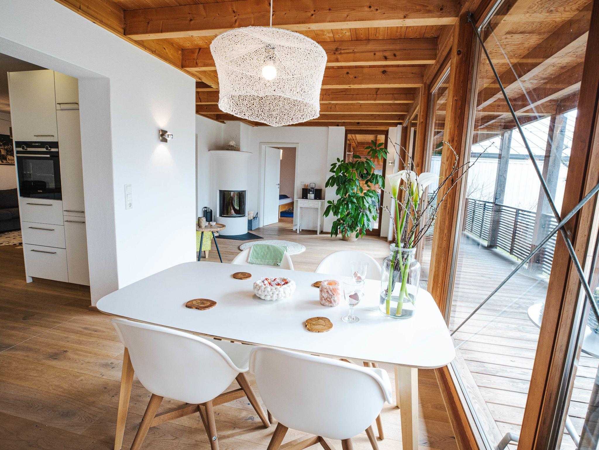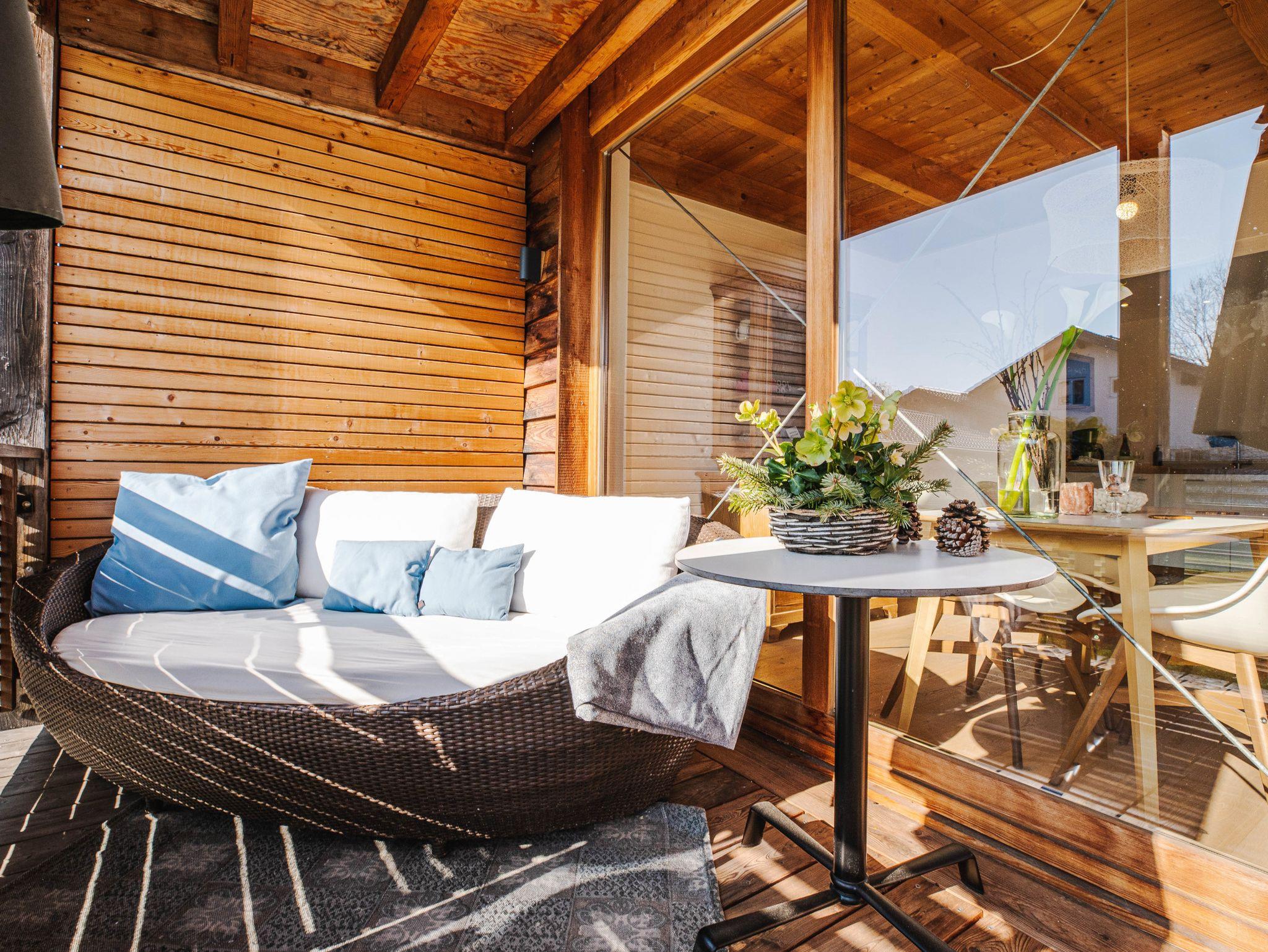 Naturhaus Luminus - Ihre Rückzugsoase für Ruhe, Entspannung und gesunde Ferien - begrüßt Sie in Bad Aibling. Die 5 Sterne Ferienwohnung (120qm), mit großer überdachter Südterasse und weitläufigem Garten, befindet sich in einer ruhigen Wohngegend, direkt am Mangfalldamm gelegen. Die Ferienwohnung aus Holz, Stein und Glas ermöglicht Licht, Luft und entspannte Atmosphäre. Die Südterrasse ist zu einem großen Garten hin geöffnet. Auch bei kaltem Wetter sitzt man gemütlich am Kachelofen und lässt sich vom Blick in den Naturgarten inspirieren. Ein idealer Rückzugsort um dem Alltag zu entfliehen. Die Therme Bad Aibling, Freischwimmbäder, Kino, Spielplätze sowie der idyllische Ortskern mit einladenden Cafe`s und Restaurant`s, sind fußläufig in wenigen Minuten zu erreichen. Sie verfügen über einen privaten PKW Stellplatz an der Unterkunft. Nahe Spazier- und Radwege an der Mangfall bieten Ihnen Sportaktivitäten und Erholung in der Natur. Für Golffreunde bietet sich die 18-Lochanlage im Golfclub Schloß Maxlrain an. Zudem bieten wir den perfekten Ausgangspunkt für Ausflüge in die Metropolregion München, den Chiemsee, nach Salzburg oder Tirol sowie ins nahegelegene Alpenvorland mit seinen einfachen bis anspruchsvollen Bergtouren. In der direkten Umgebung finden Sie ein hochwertiges Angebot von privaten Kliniken, Wellness- und Gesundheitsprogrammen.