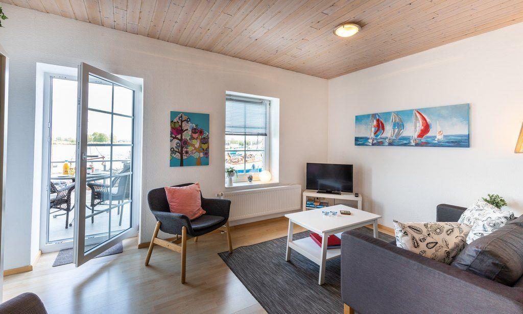 Gemütliche, 43 qm Ferienwohnung im 1. Stock auf der Werft mit Ausblick auf den Hafen und die Schlei, direkt am Wasser gelegen.