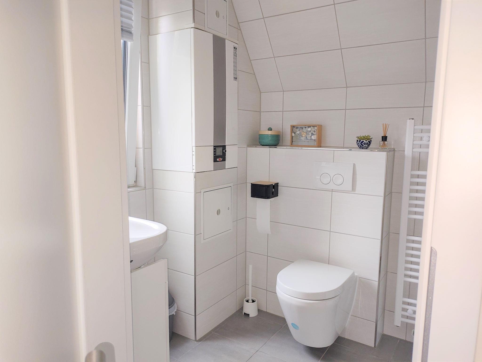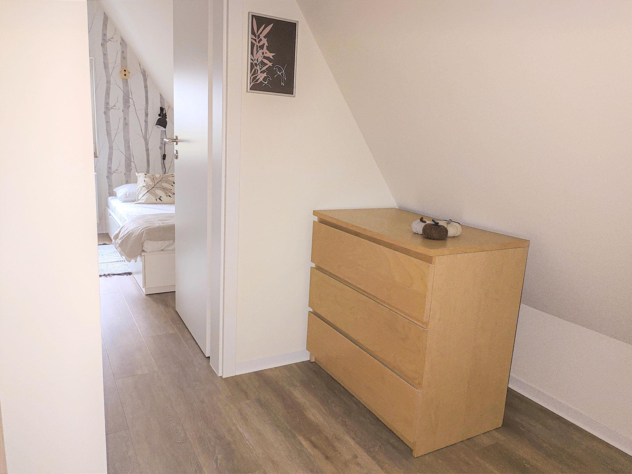 "Waldoase", 4-room house 75 m2 on 2 levels. Bright, modern and cosy furnishings: living/dining room with cable TV and flat screen. Exit to the terrace. 1 room with 1 double bed (160 cm, length 200 cm). Open kitchen (dishwasher, 4 induction hot plates, toaster, kettle, microwave, freezer, electric coffee machine). Shower/WC. Upper floor: 1 room with 2 beds (90 cm, length 200 cm). 1 room with 2 beds (90 cm, length 200 cm). Gas heating. Large terrace 23 m2. Terrace furniture, barbecue, deck chairs (2). Facilities: washing machine, children's high chair, baby cot, hair dryer. Internet (WiFi, free). Please note: non-smoking house.