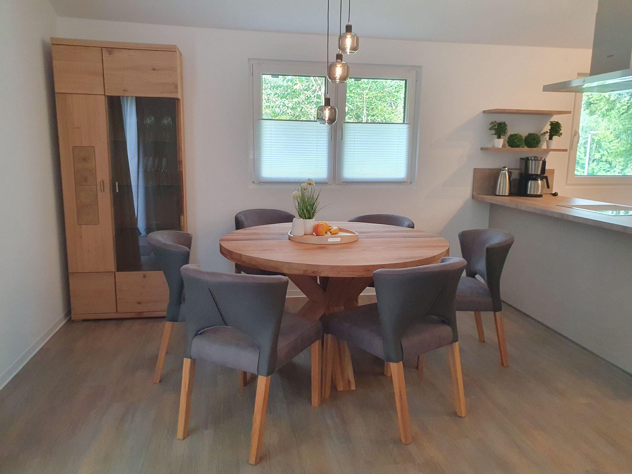 Das Haus wurde im September 2023 fertiggestellt und bietet Platz für 6 Personen in einem Doppelzimmer mit Boxspringbett und 2 Schlafzimmern mit jeweils 2 Einzelbetten. Die offene Küche ist modern und voll ausgestattet, der Ess- und Wohnbereich mit TV und WLAN. Von hier aus gelangen Sie auf eine 18m2 große Terrasse. Das Bad hat eine große Dusche und einen Waschtrockner. Es handelt sich um ein Nichtraucherhaus, Hund nach Absprache.