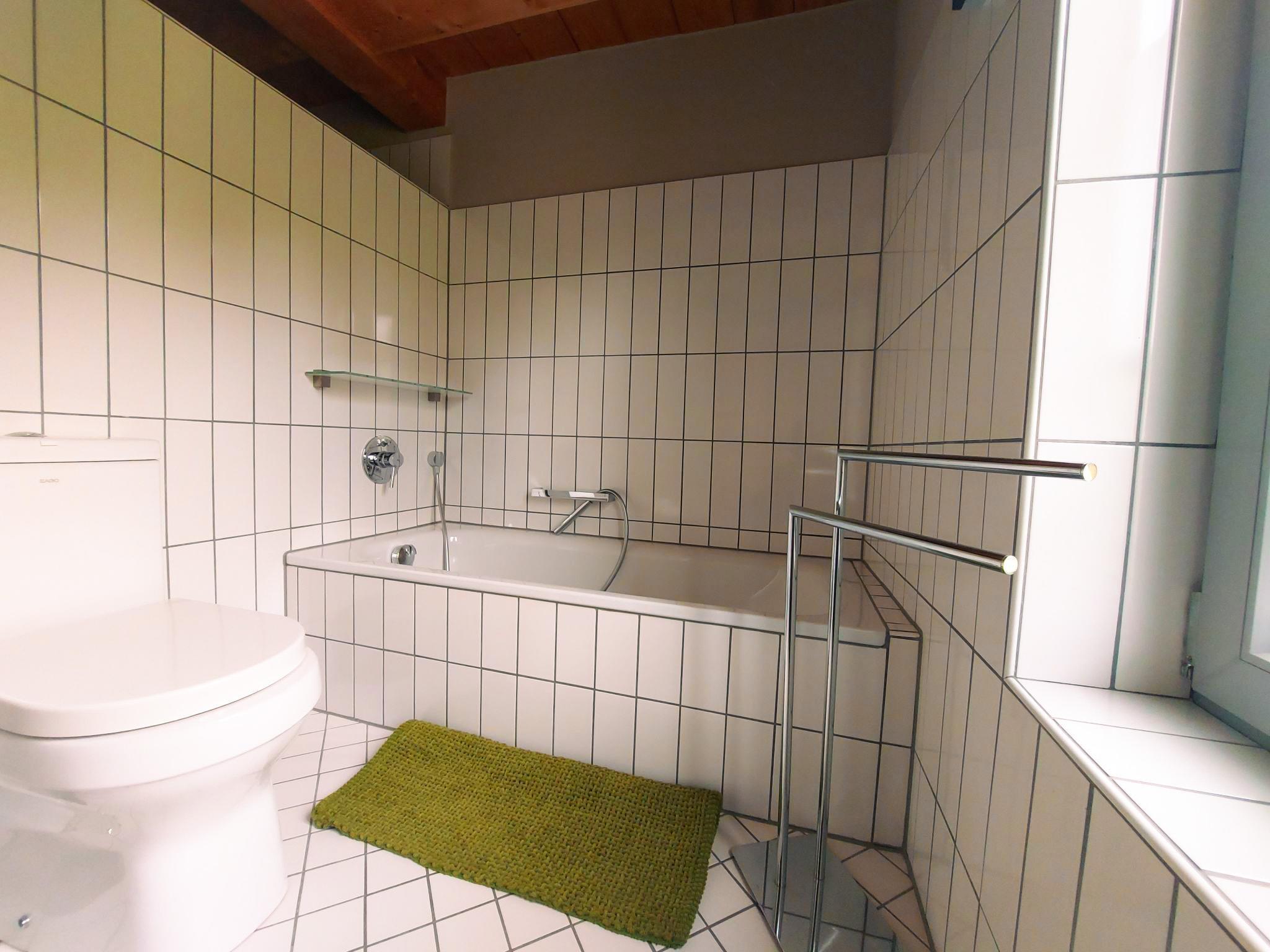 Badewanne, Badezimmer mit Fenster, Dusche, Separates WC, Waschbecken, WC