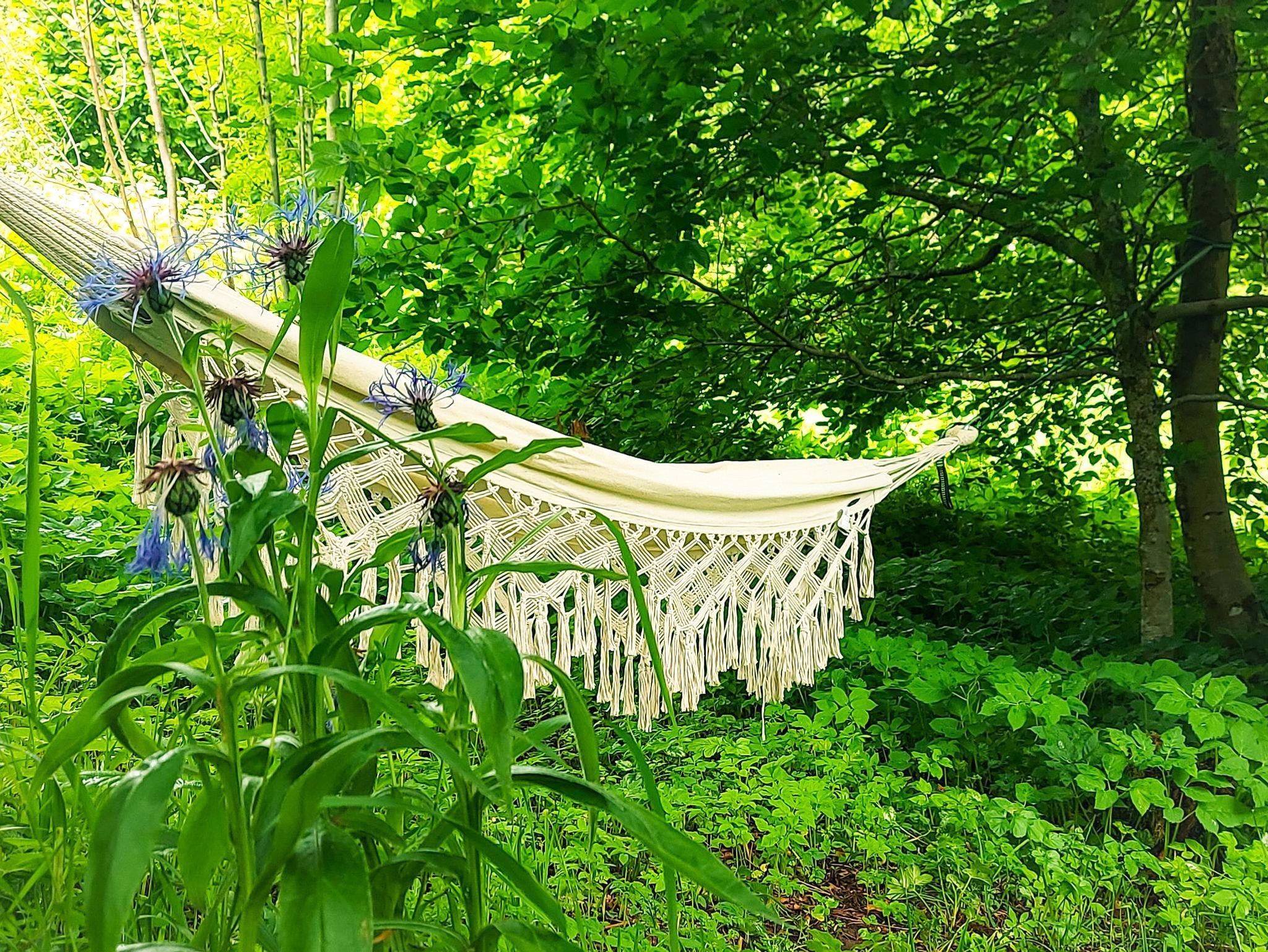 Im weitläufigen Außenbereich wird Erholung großgeschrieben: Mehrere Terrassen bieten Raum für Sonne und Geselligkeit, die Außensauna verspricht Wellness pur, und für die kleinen Gäste gibt es eine Rutsche und viel Platz zum Toben. Eine Hängematte lädt zum Träumen ein, während ausreichend Parkmöglichkeiten für stressfreie Anreise sorgen.