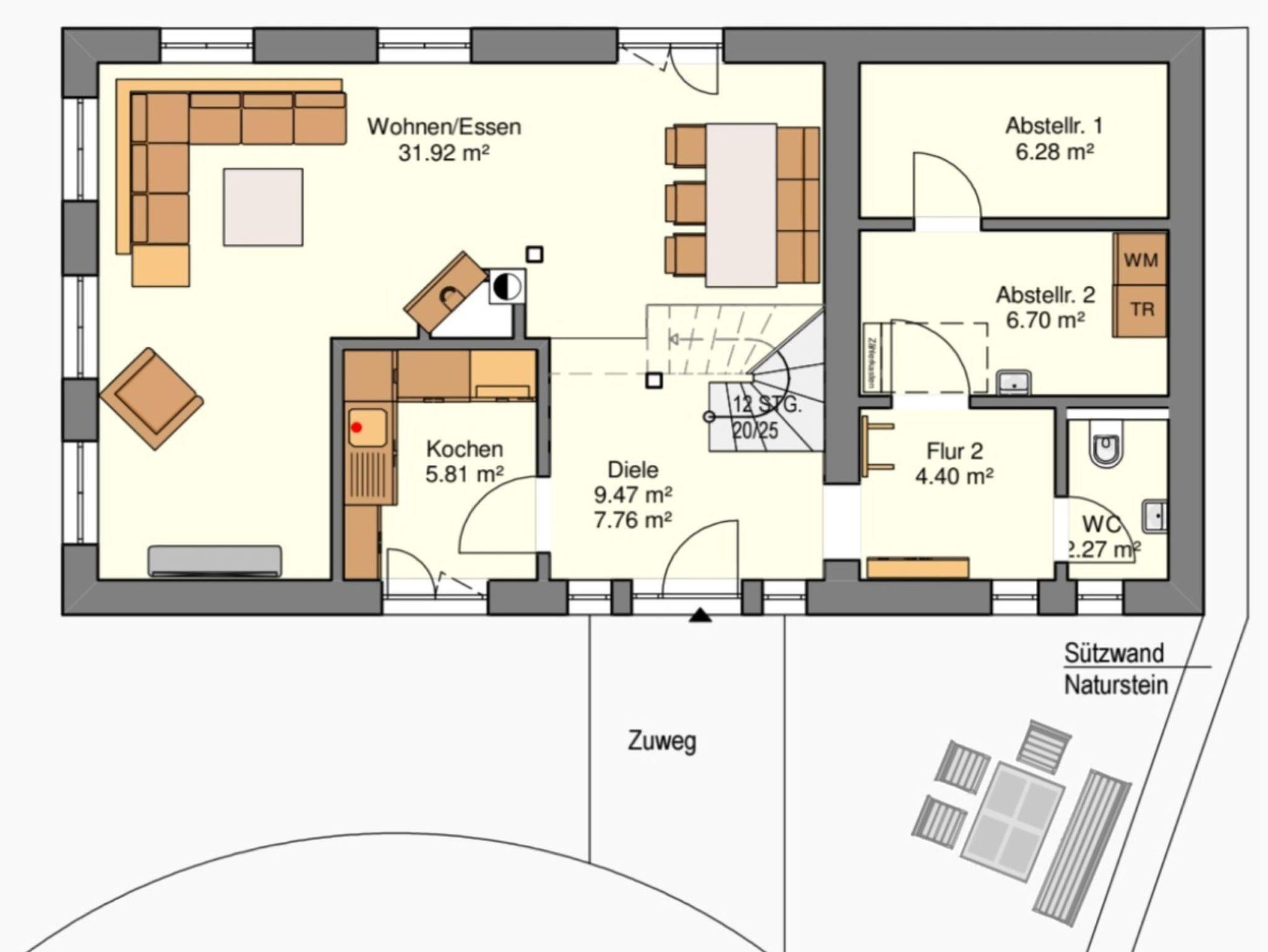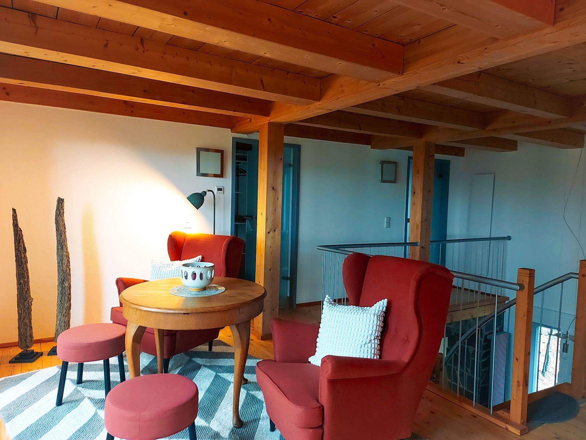 Das Badezimmer überzeugt mit Badewanne, Dusche und WC, ergänzt durch ein separates Gäste-WC im Erdgeschoss. Ein praktischer Wirtschaftsraum mit Waschmaschine, Trockner, Staubsauger, kleinem Gefrierschrank sorgt für zusätzlichen Komfort. Auf der offenen Galerie erwarten Sie eine gemütliche Leseecke, ein ruhiger Arbeitsplatz und eine Spielecke – perfekt für entspannte oder kreative Momente.