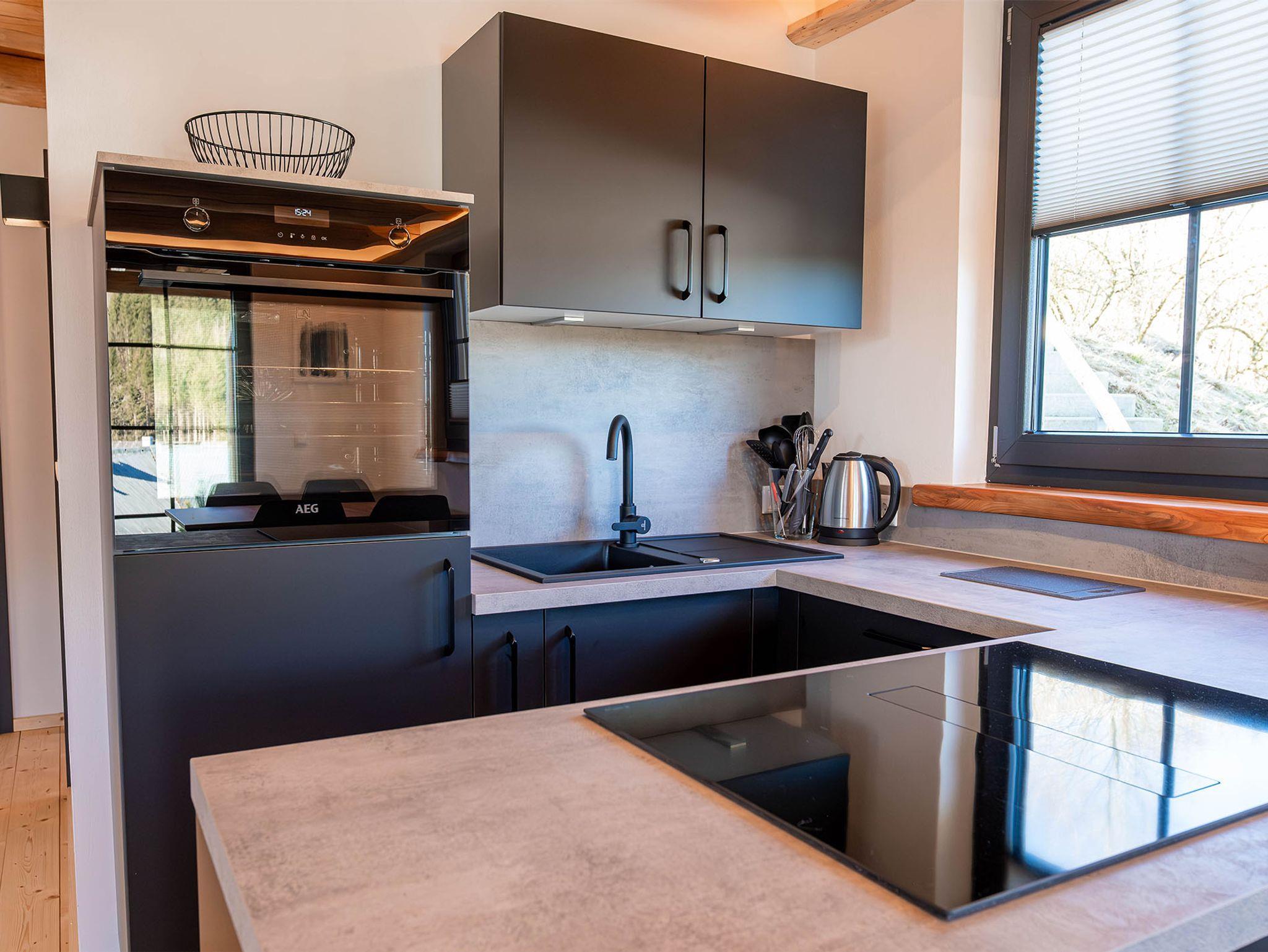 Die voll ausgestattete Küche mit Kühl-Gefrierkombination, Backofen, Geschirrspüler, Toaster, Wasserkocher, Kaffeemaschine und Induktionskochfeld bietet alles, was Sie für kulinarische Erlebnisse benötigen. Der angrenzende Essbereich sorgt für gesellige Stunden, während der gemütliche Wohnbereich, mit einer großen ausziehbaren Couch und TV, Entspannung pur verspricht.