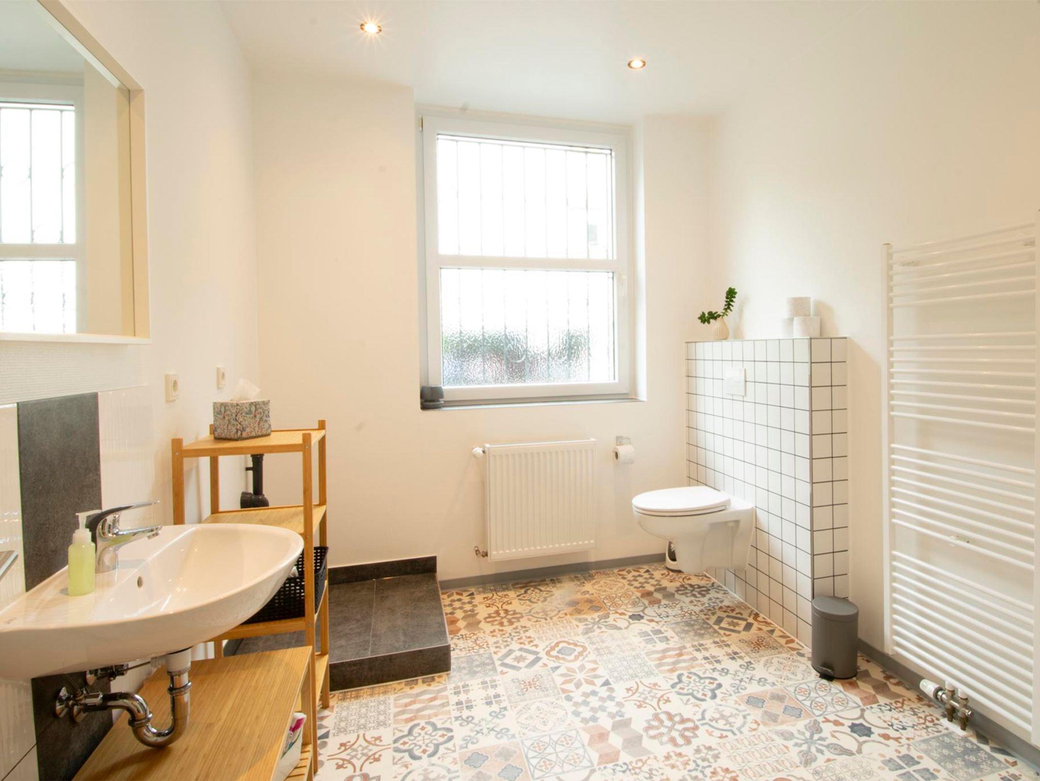 Badezimmer: innenliegendes Badezimmer mit Lüftung, geräumiger Dusche, Glasduschabtrennung, WC