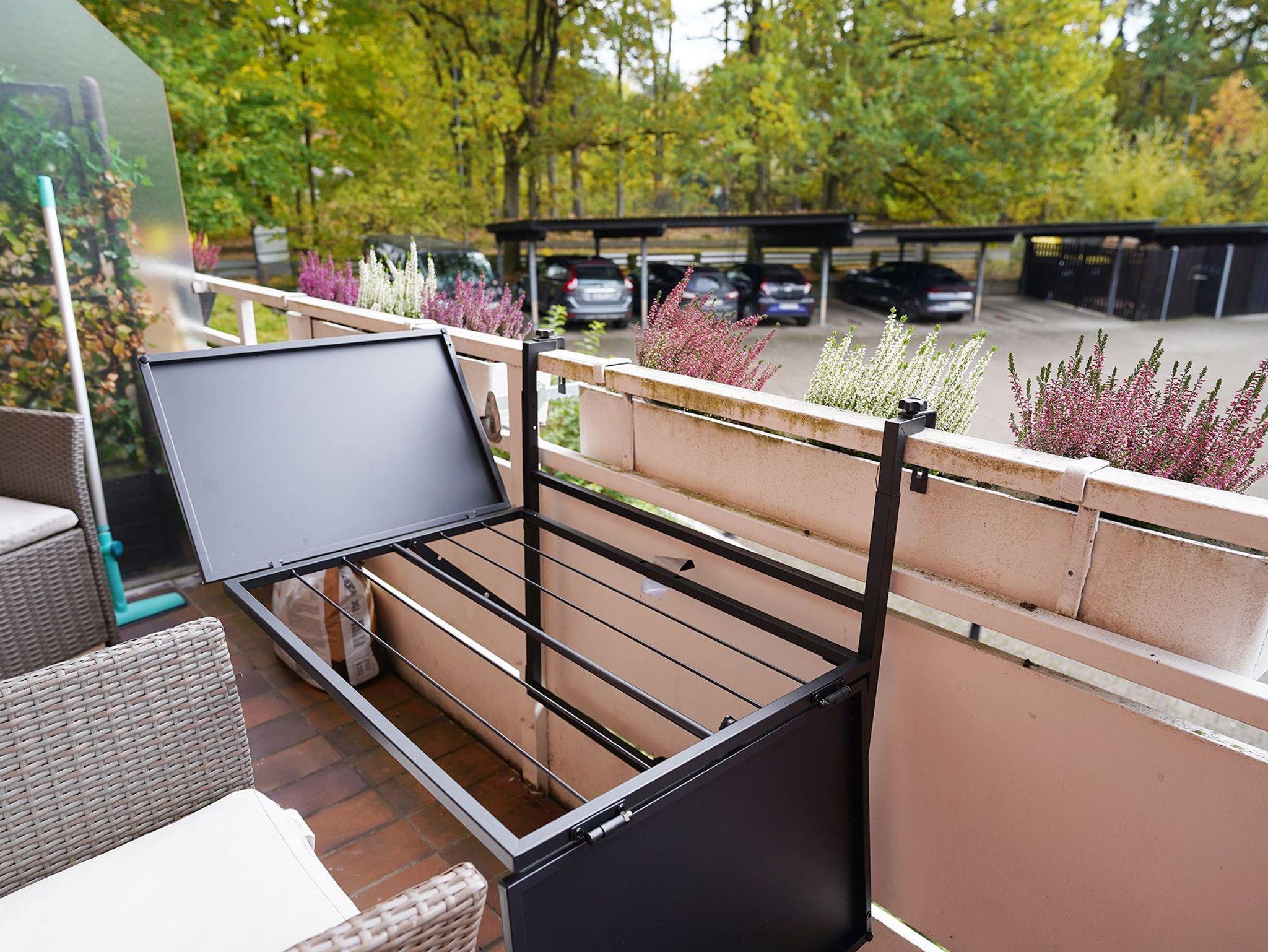 Der sonnige Balkon lädt zum Verweilen und Entspannen ein oder zum Trocknen Ihrer Badesachen trocknen.