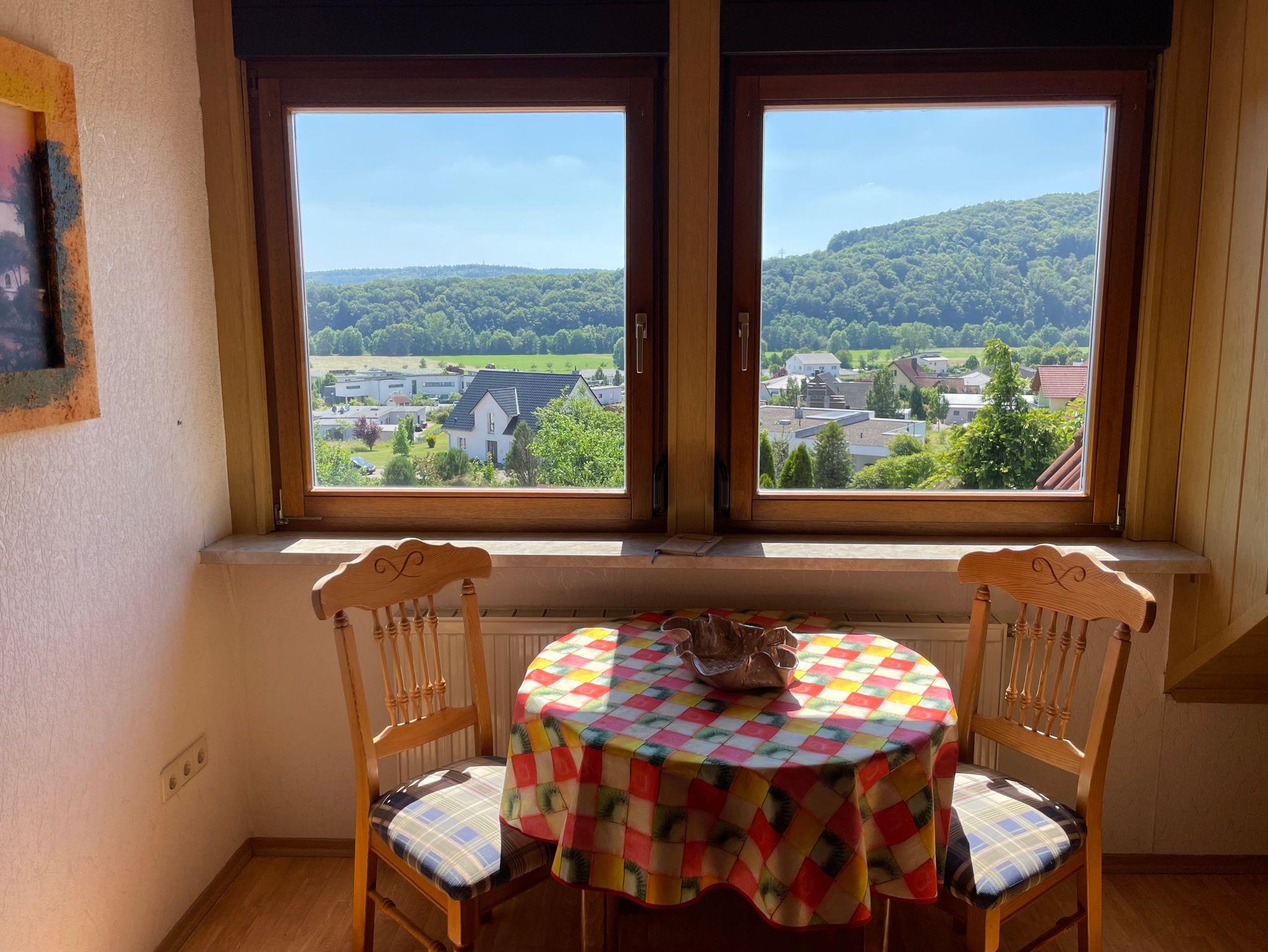 Obergeschosswohnung - 1 Etage - 75qm - 2 Schlafzimmer - Süd/ Westbalkon mit herrlichen Rundblick ins Saaletal.