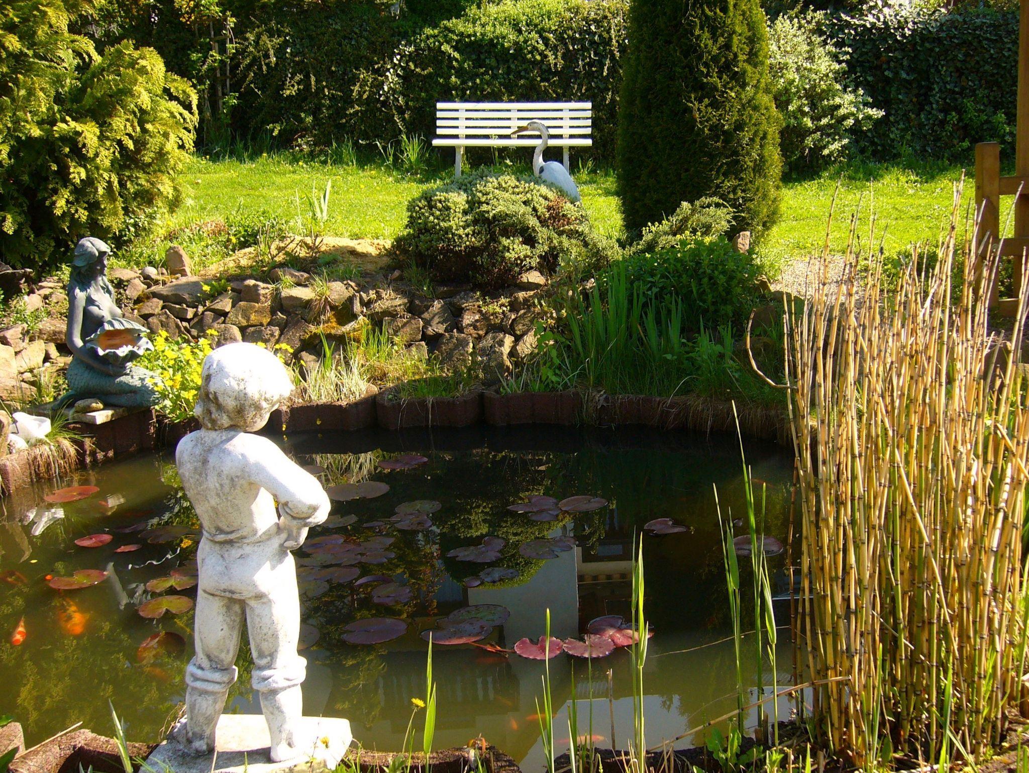 In unseren ca. 3000qm großen Garten mit Liegewiesen, Zierfischteichen (Biotope) und idyllischen Plätzen mit Grillmöglichkeit, können Sie die Seele baumeln lassen und den Alltag vergessen. Auch die Kleinsten werden sich bei uns sicherlich wohl fühlen: Im Spielgarten, können die Kinder nach Herzenslust sich austoben. Es steht ein Spielplatz mit Rutsche, Schaukel, Trampolin u.s.w zur Verfügung.