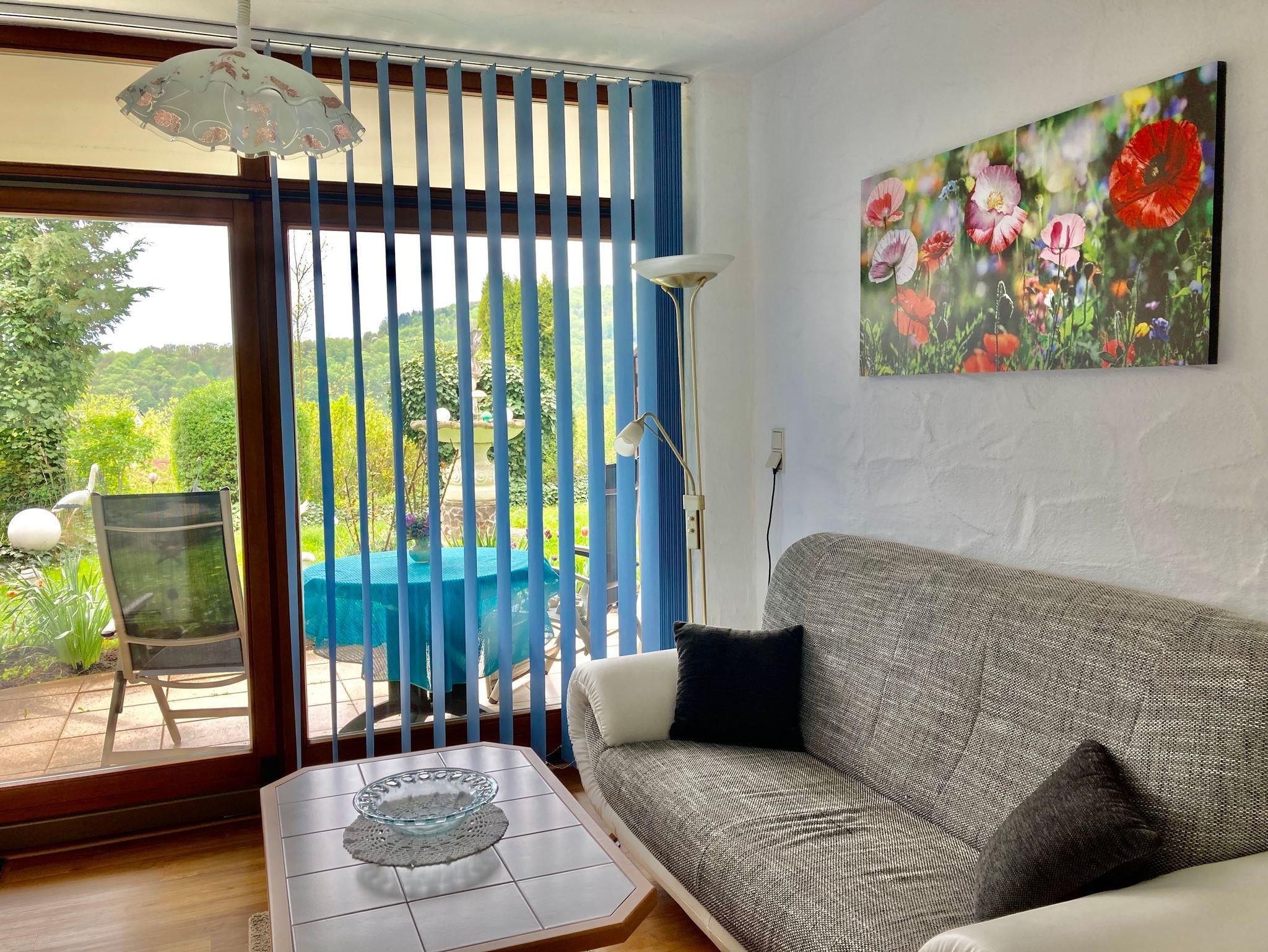 Erdgeschosswohnung - 60qm mit überdachter Südterrasse und direkten Zugang zur Liegewiese, Garten und Parkplätzen.
