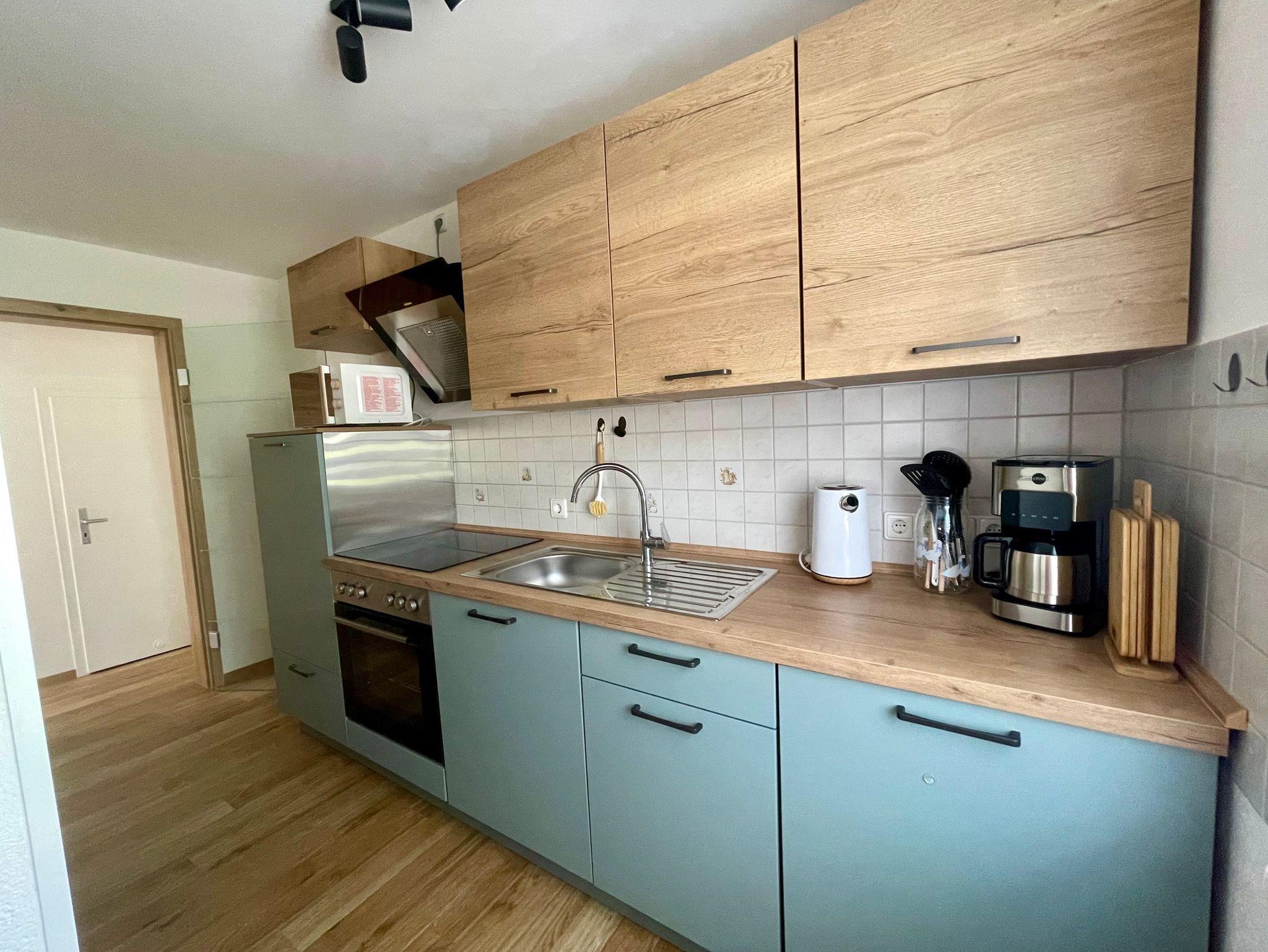 In der voll ausgestatteten Einbauküche finden Sie alles, was Sie zum Kochen benötigen: Kühlschrank mit Gefrierfach, Cerankochfeld mit Dunstabzug, Backofen, Mikrowelle, Toaster, Wasserkocher, Eierkocher, Kaffeemaschine sowie ausreichend Geschirr, Gläser, Besteck und Kochutensilien.