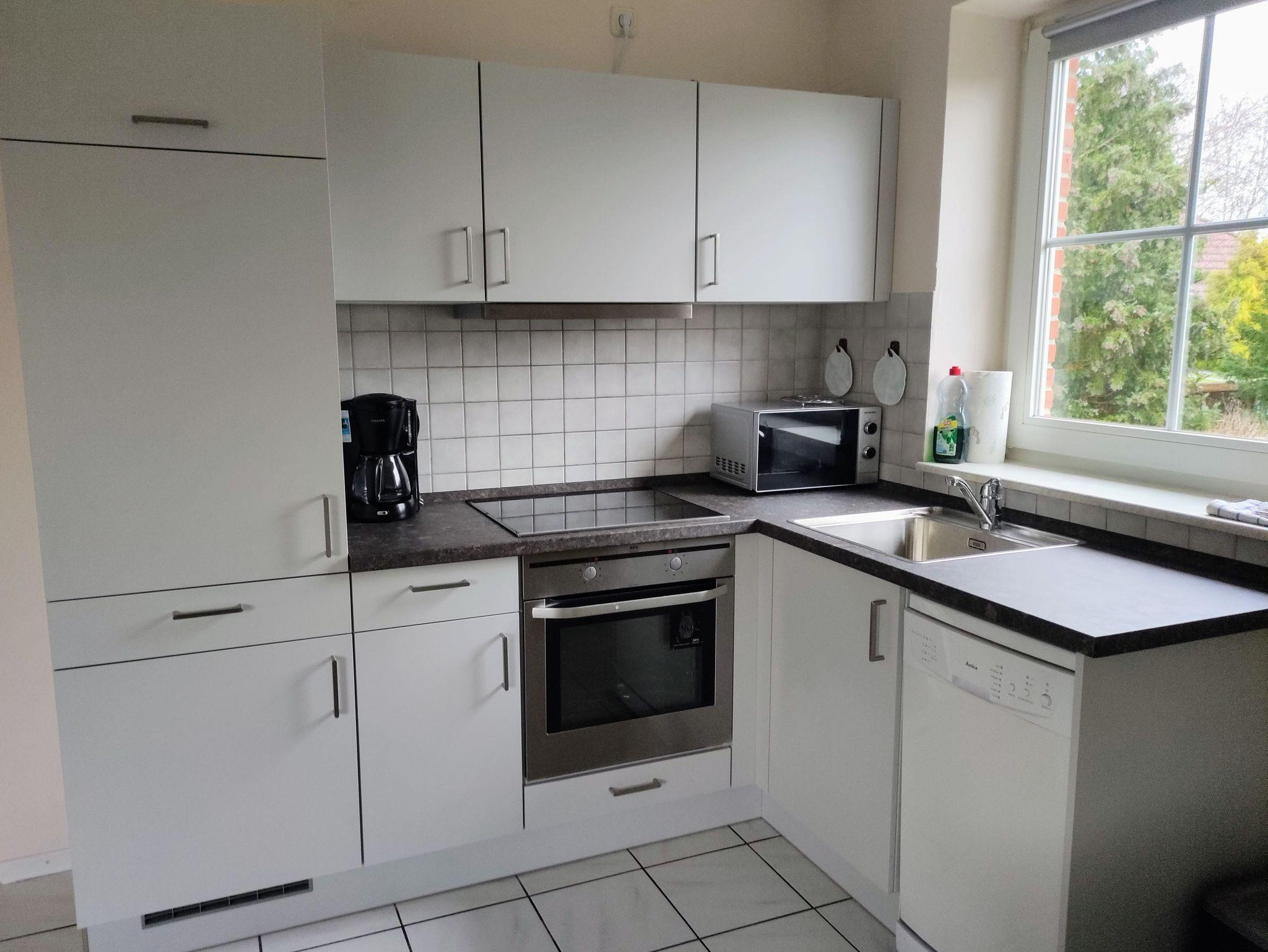 Die offene Einbau-Küchenzeile (neu Januar 2024) ist mit Geschirrspüler, E-Herd mit Ceranfeld und Backofen mit Grill, Dunstabzug, Kühlschrank mit ****Gefrierfach, Mikrowelle, Kaffeemaschine, Toaster, Wasserkocher sowie Handmixer ausgestattet und selbstverständlich voll eingerichtet.