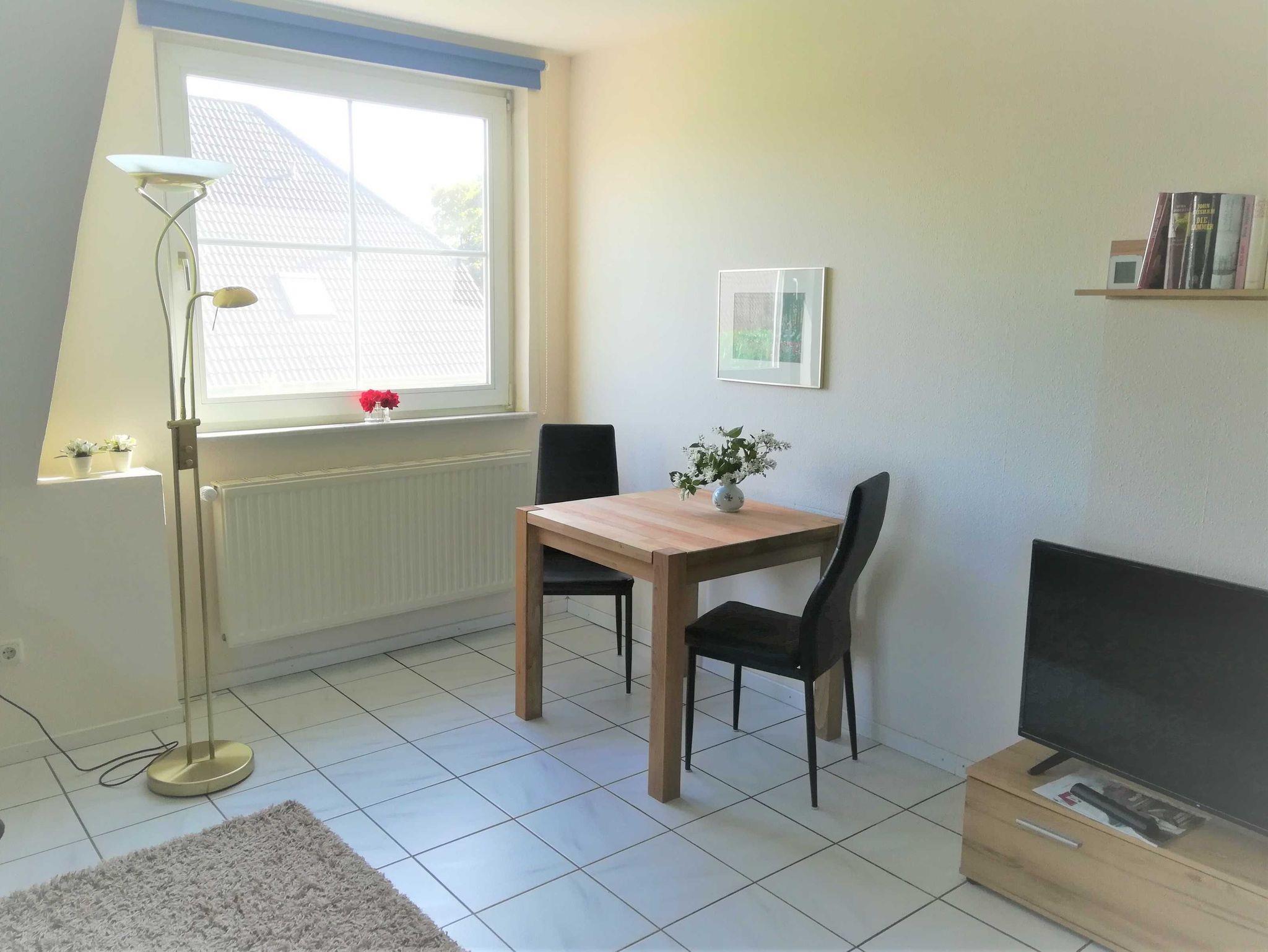 Das Wohn/Esszimmer verfügt über eine gemütliche Sitzgruppe mit Schlafcouch, Fluter und Leselampe. Eine Essecke ist vorhanden sowie eine Wohnkombination, LED TV (101 cm) , HiFi-Anlage, Funkwecker und Leselektüre. Das Wohnzimmer hat Fenster zum Osten und Süden, so dass Sie Sonne genießen können!