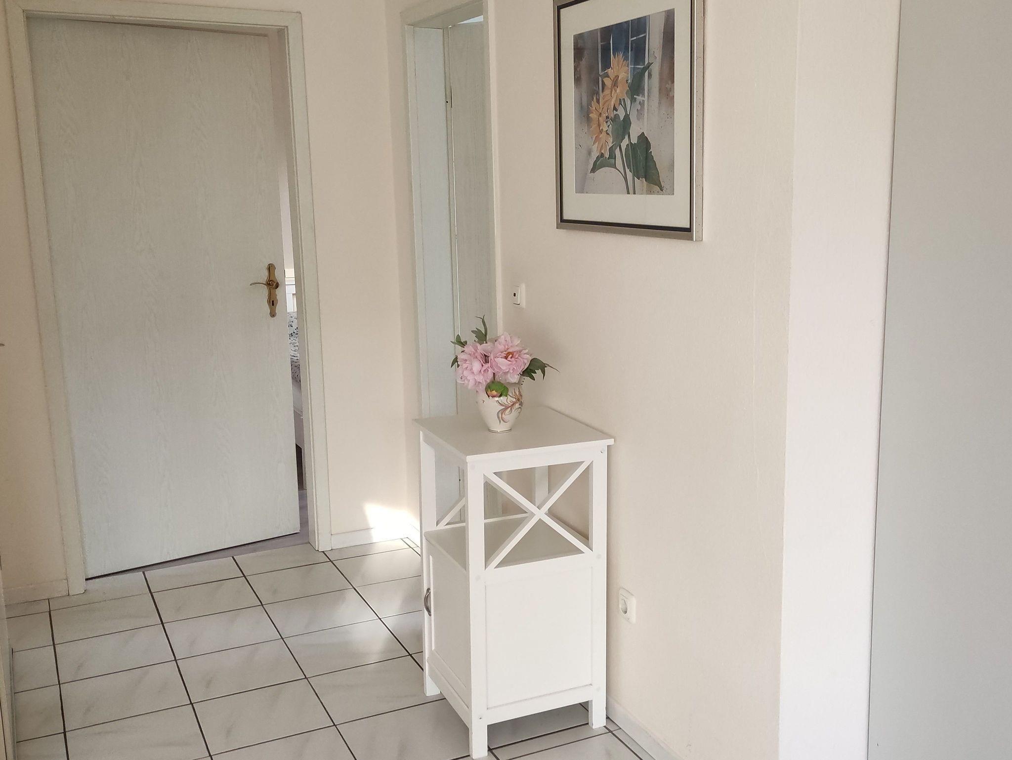 Für einen erholsamen Aufenthalt bieten wir Ihnen eine geschmackvoll eingerichtete ****Sterne-Ferienwohnung (Nichtraucher), 50 qm, im 1. OG - aber mit wenig Schräge - unseres sehr ruhigen Zweifamilienhauses. Die Wohnung ist mit Laminat bzw. Fliesen ausgestattet. Internet über WLAN kostenlos. Waschmaschine, Trockner, Bügeleisen, Bügelbrett stehen Ihnen nach Absprache zur Verfügung. Die Wohnung verfügt über keinen Balkon, aber In unserem Garten erwarten Sie eine Liegewiese mit Gartenmöbeln, wo Sie ggf. auch rauchen dürfen. Ihre Fahrräder können Sie im abschließbaren Gartenhaus unterstellen, 2 Leihfahrräder sind vorhanden. Kostenlose Parkplätze befinden sich direkt vor unserem Haus.