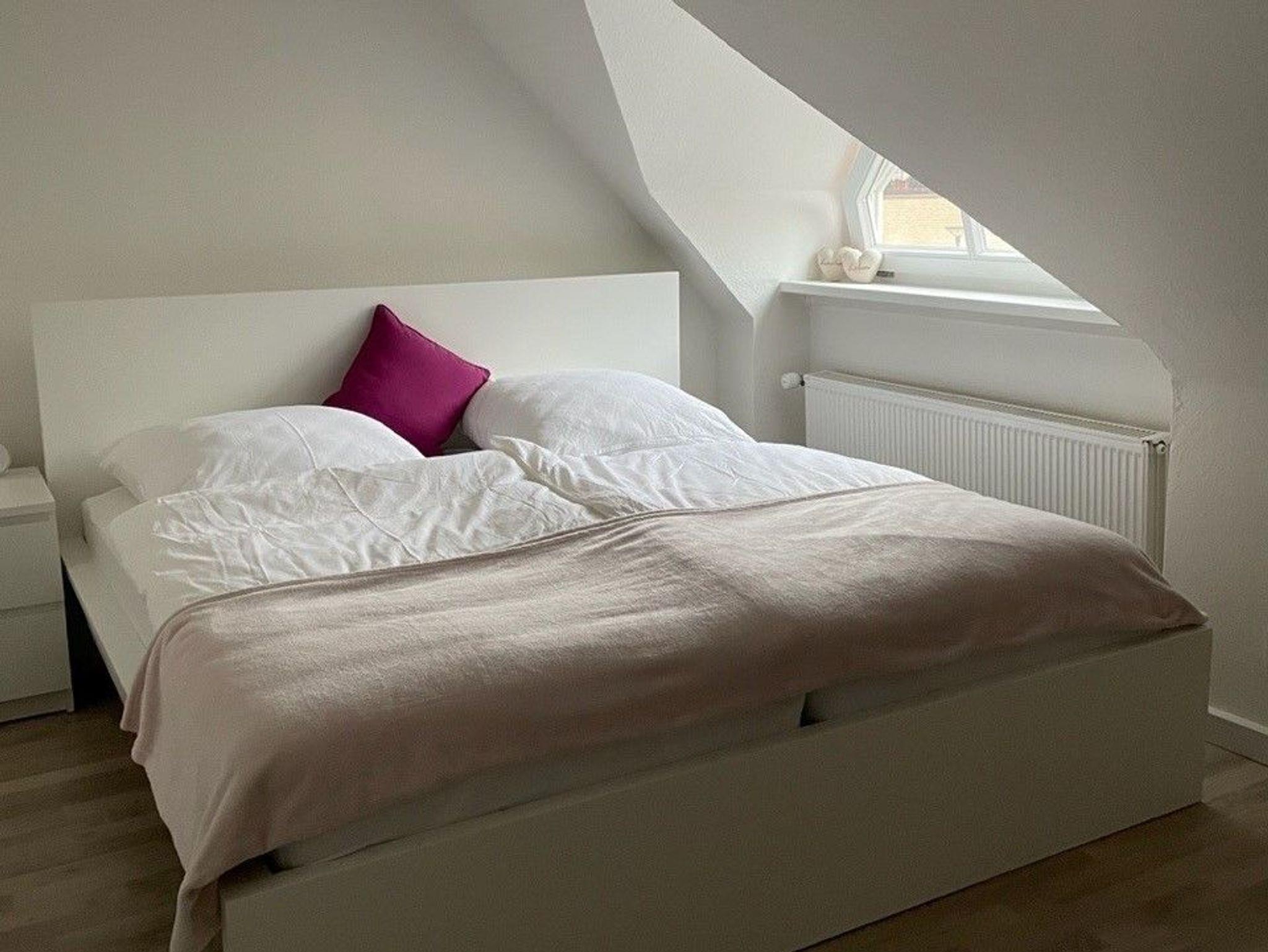 Diese modern eingerichtete und bestens ausgestattete Wohnung lässt wirklich keine Wünsche offen. Bis zu fünf Personen finden hier Platz in einem Einzelzimmer, einem Doppelzimmer und auf einem kleinen Schlafboden im Wohnbereich, der über eine kleine Leiter zugänglich und mit einem kleineren Doppelbett (1,40 cm) ausgestattet ist. Die Räume können abgedunkelt werden.