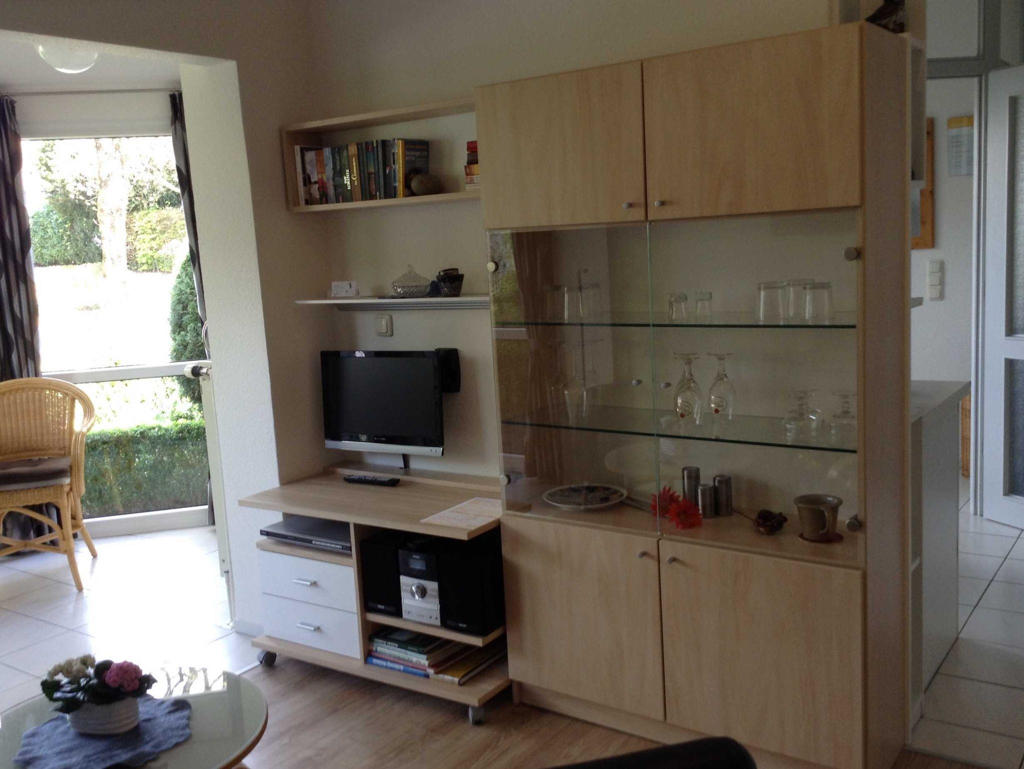 Die 42 qm-Wohnung ist mit elektrischen Rollläden, TV, Stereoanlage ausgestattet und der Möglichkeit zur Nutzung des Internetanschlusses sowie Bügeleisen und Bügelbrett. Eine eingegrünte, z. T. verglaste Terrasse mit entsprechender Möblierung sowie Markise steht Ihnen zur alleinigen Nutzung zur Verfügung. Eine weitere Sitzecke im Garten kann gemeinschaftlich genutzt werden.