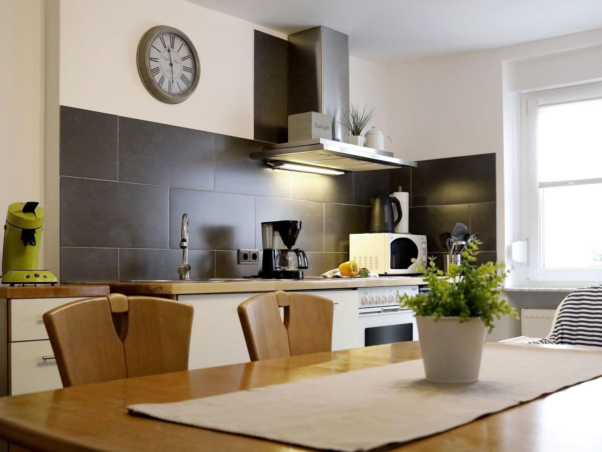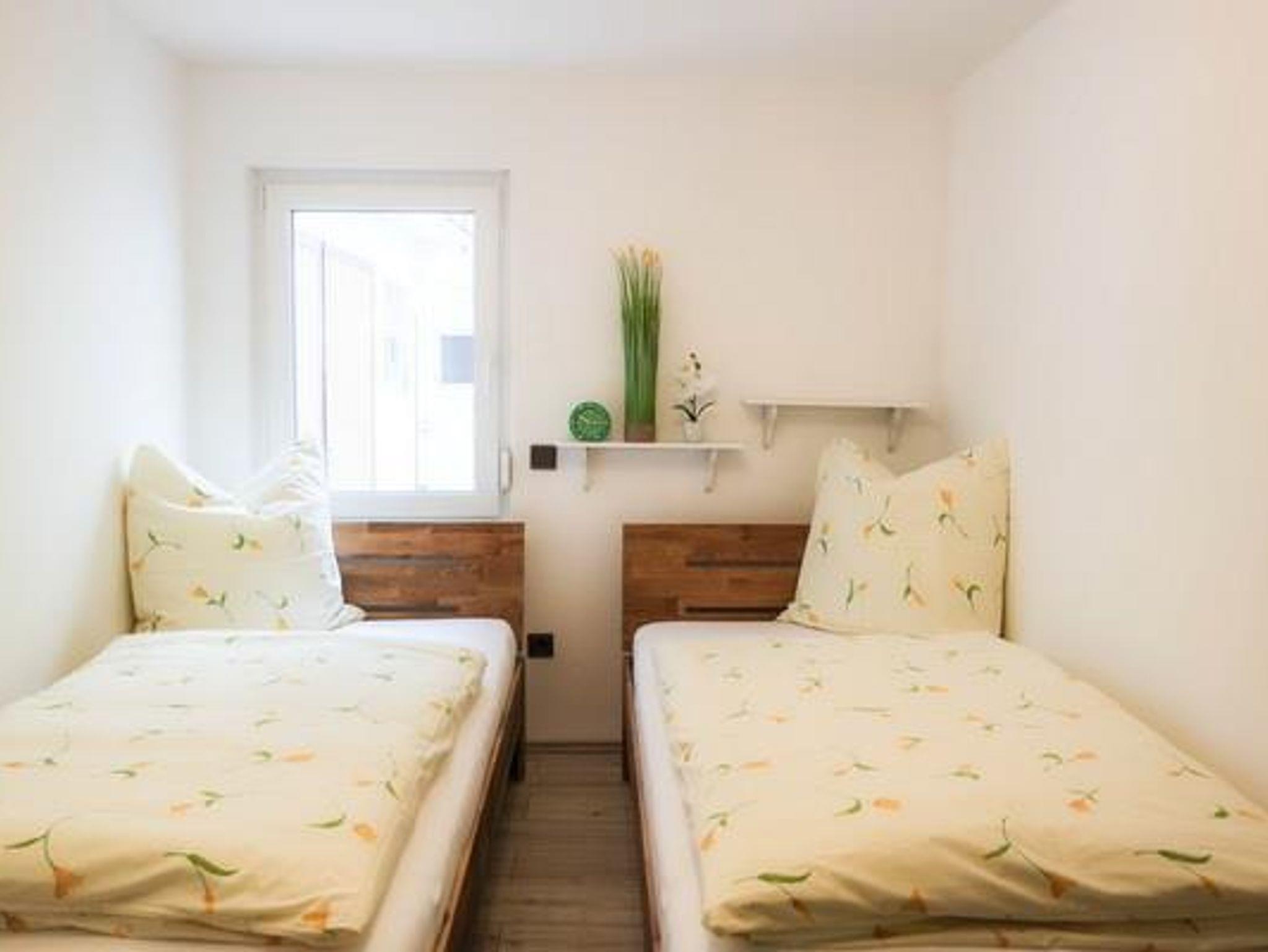 Die FeWo mit Tageslichtbad liegt im Erdgeschoß. Das Bad erreichen Sie in der Wohnung, vom Flur aus, über wenige Treppenstufen. Austattung: – zwei Einzelbetten (zusammenstellen möglich) – Beistellbett auf Anfrage – Wohnzimmer mit großer Schlafcouch – Küche mit Essbereich – Backofen, Cerankochfeld und Kühlschrank – Mikrowelle, Senseo-Kaffeepadmaschine, Toaster und Wasserkocher – TV SAT, Radio, CD Player – Fön, Kosmetikspiegel, Dusche Bettwäsche und Handtücher sind vorhanden. Ausstattung Außenbereich: – ansprechender Innenhof mit Sitzmöglichkeiten – abschließbare Parkmöglichkeit für einen PKW – Motorrad, Fahrrad oder ähnliches zusätzlich möglich Geeignet für Nichtraucher, Familien und Alleinreisende. Haustiere sind nicht erlaubt.