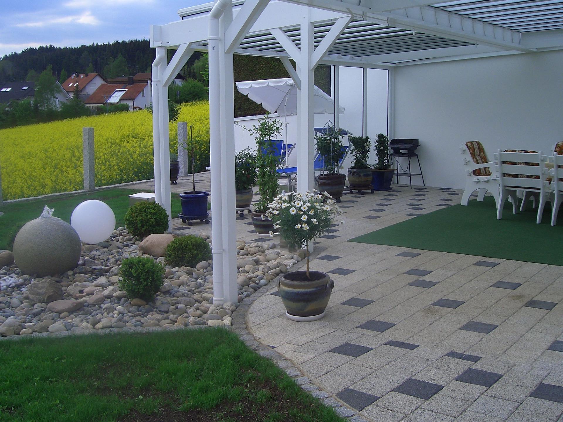 The outdoor area of our holiday flat offers a spacious, furnished terrace and a lovingly designed garden with an illuminated fountain. You can spend wonderful hours outdoors under the landscaped pergola with an opening roof. The direct access to the large garden from the living room and bedroom allows you to enjoy the fresh air and the unique view of Bad Dürrheim and the Black Forest at any time.