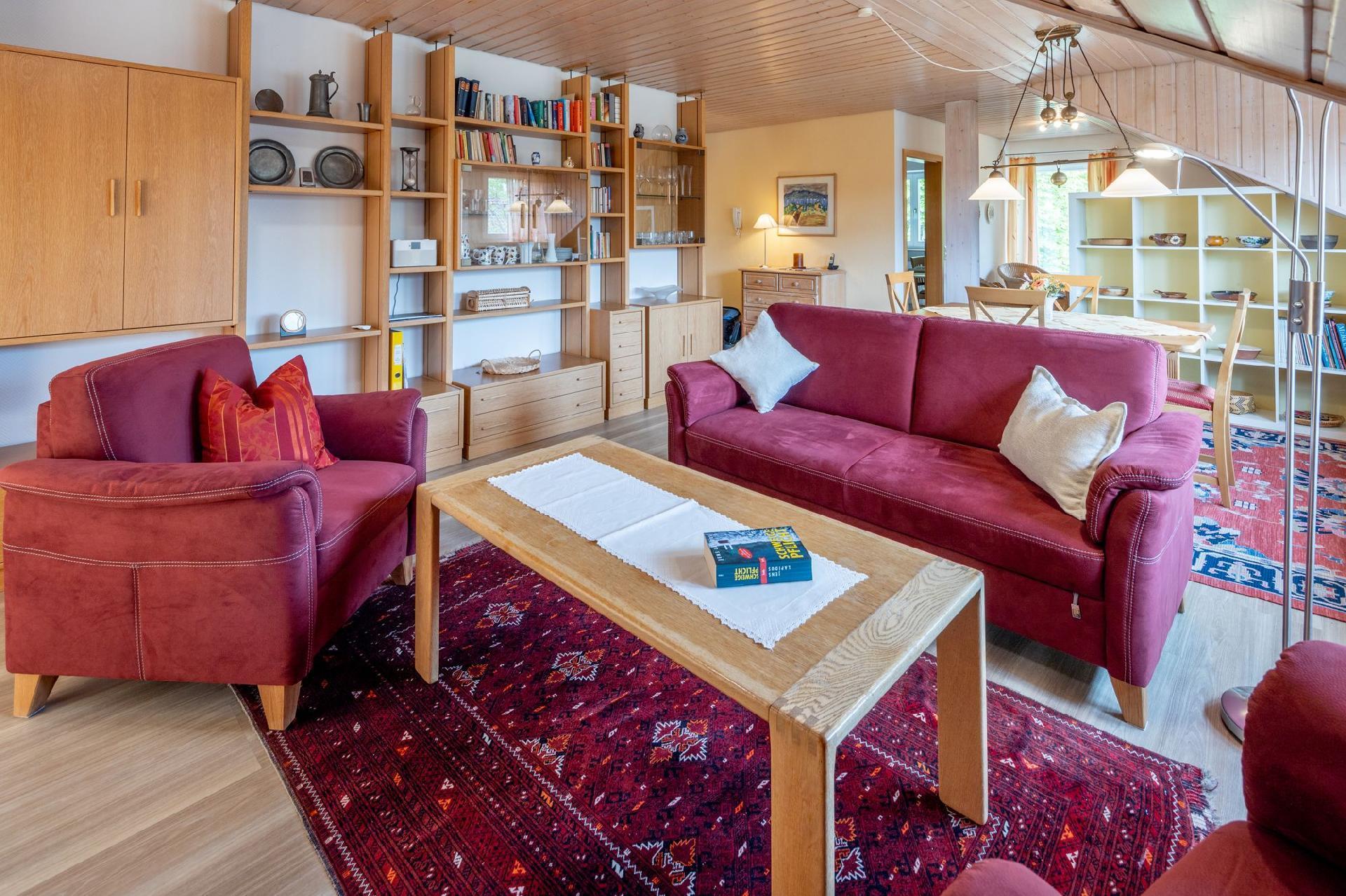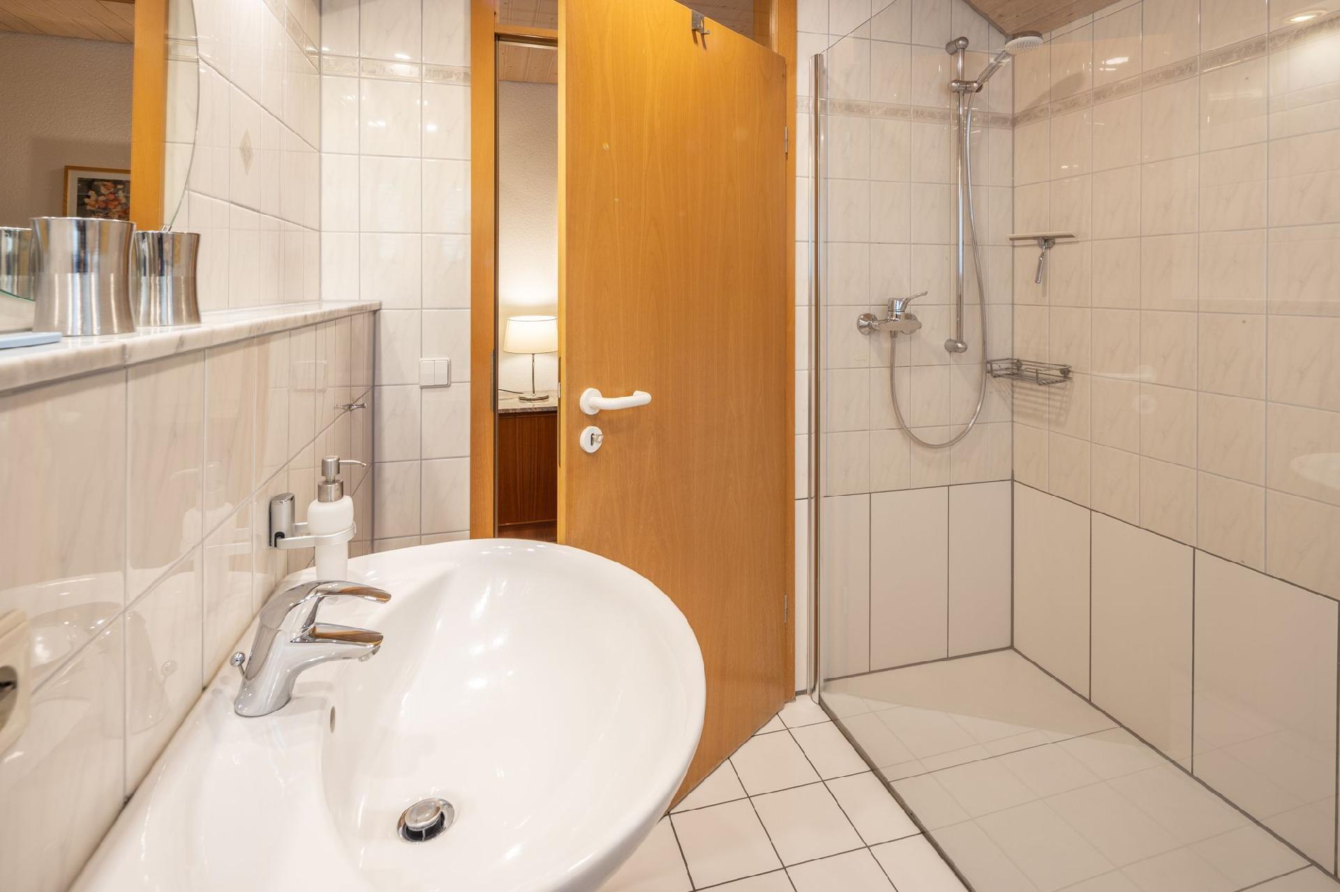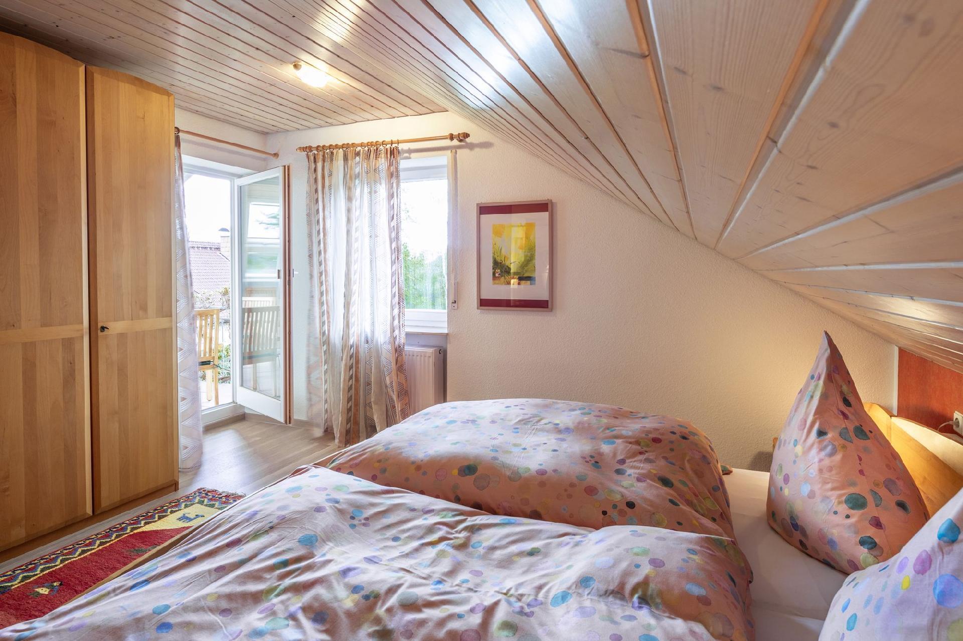 On the upper floor there is a spacious 2-room flat for two to four people (75 m2) with living-dining room (with 2 additional beds behind a room divider), cable TV, DVD player, radio with CD, telephone, fitted kitchen (dishwasher, Nespresso and coffee machine, microwave), bathroom with walk-in shower, separate toilet, bedroom (double bed, large wardrobe) and large balcony facing south-west. There is also a small swimming pool with counter-current swimming and a sauna. Both can be used exclusively and free of charge by holiday guests.
