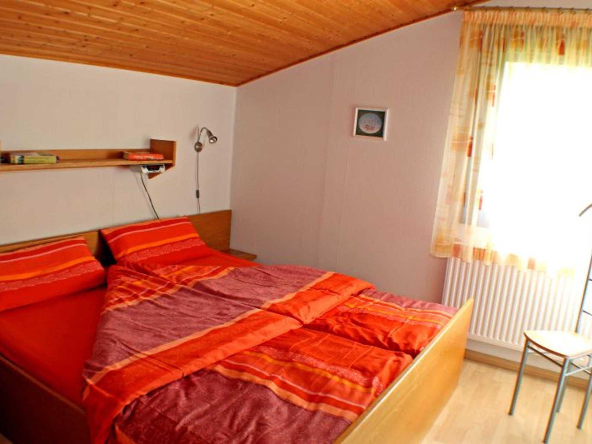Ein Schlafzimmer mit einem Bett und eine über eine Leiter erreichbare gemütliche Schlafkoje für Kinder ab 5 Jahren mit zwei Schlafmöglichkeiten, sowie ein zweiter Fernseher mit DVD-Player