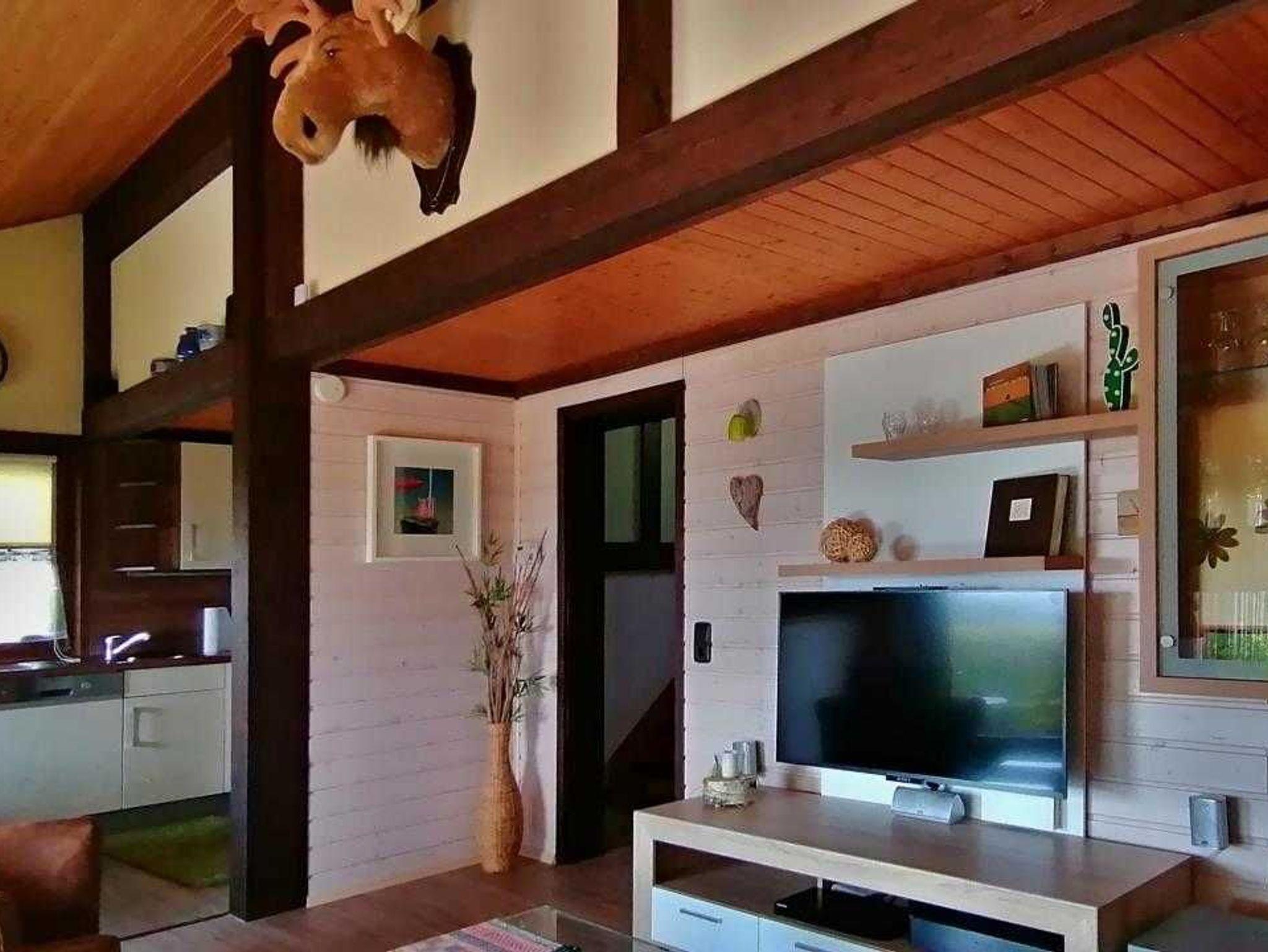 Sie wohnen in einem 3-Zimmer-Ferienhaus für bis zu 6 Personen auf mehreren Ebenen auf ca. 68 m² Wohnfläche. Ein Schlafzimmer mit Doppelbett + Emporemit einer weiteren Schlafgelegenheit, ein zweites Schlafzimmer mit Doppelbett und zwei getrennten Schlafgelegenheiten auf einer Empore mit TV+DVD Gerät, Wohnraum, separater Essplatz, voll ausgestatteter Küchenbereich inklusive Spülmaschaschine, Senseo und Mikrowelle, Bad mit Dusche und WC, separater Abstellraum, Terrasse, Kabel-TV (LCD), DVD+Stereo-System, Wii+ WLAN Hausanschluss. Zusätzlich Kinderreisebett und Hochstuhl.