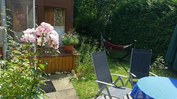 The private outdoor area invites you to relax and enjoy. A sunny, south-facing garden with seating and sunbathing areas provides the perfect backdrop for relaxing hours. Equipped with deckchairs, a hammock and a charcoal barbecue, this area is an exclusive retreat for our guests. The car park on the private property is free of charge and provides barrier-free access to the flat.
