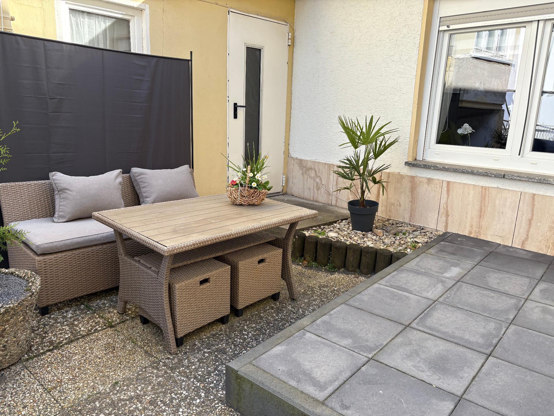 The small terrace of the holiday flat invites you to enjoy the peace and quiet of the morning with a cup of coffee, especially in summer, or to end the day in pleasant evening temperatures. A cosy seating area allows you to spend relaxing hours outdoors while your little four-legged friend explores the surroundings.