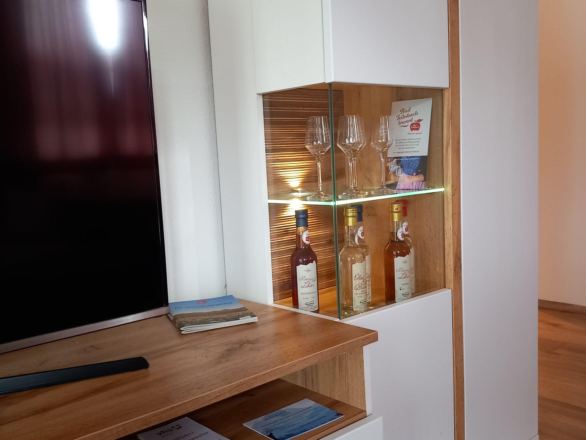 Eigener Eingang, großer Wohnraum mit Essecke, bestens ausgestattete Küche, 1 Schlafzimmer, Badezimmer mit Dusche und WC, Waschmaschine mit Trocknerfunktion, freies WLAN