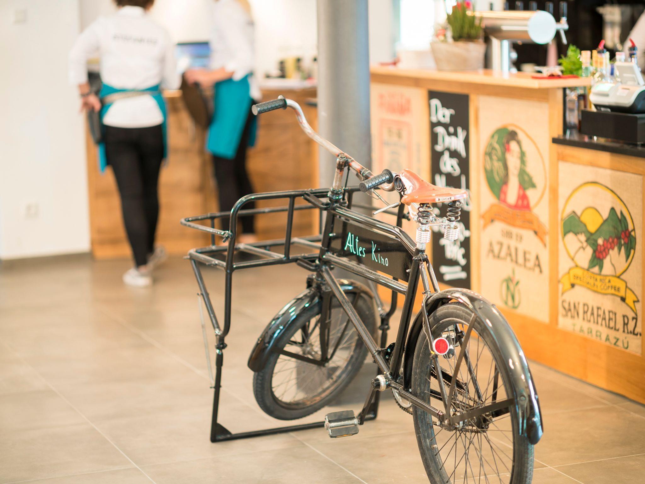 Sie dürfen sich auf den Charme, des früheren Kinos von Bad Feilnbach, freuen. Unsere drei Doppelzimmer, teils mit Balkon, sind nach Kinofilmen benannt und im passenden Stil eingerichtet. Gerne können Sie ein Zimmer auch zu dritt belegen (die Schlafcouch ist 183 cm lang und 130 cm breit). Unsere Gästezimmer befinden sich im Dachgeschoss - ein Aufzug ist vorhanden. Gerne können Sie Ihre Fahrräder in der Garage abstellen.