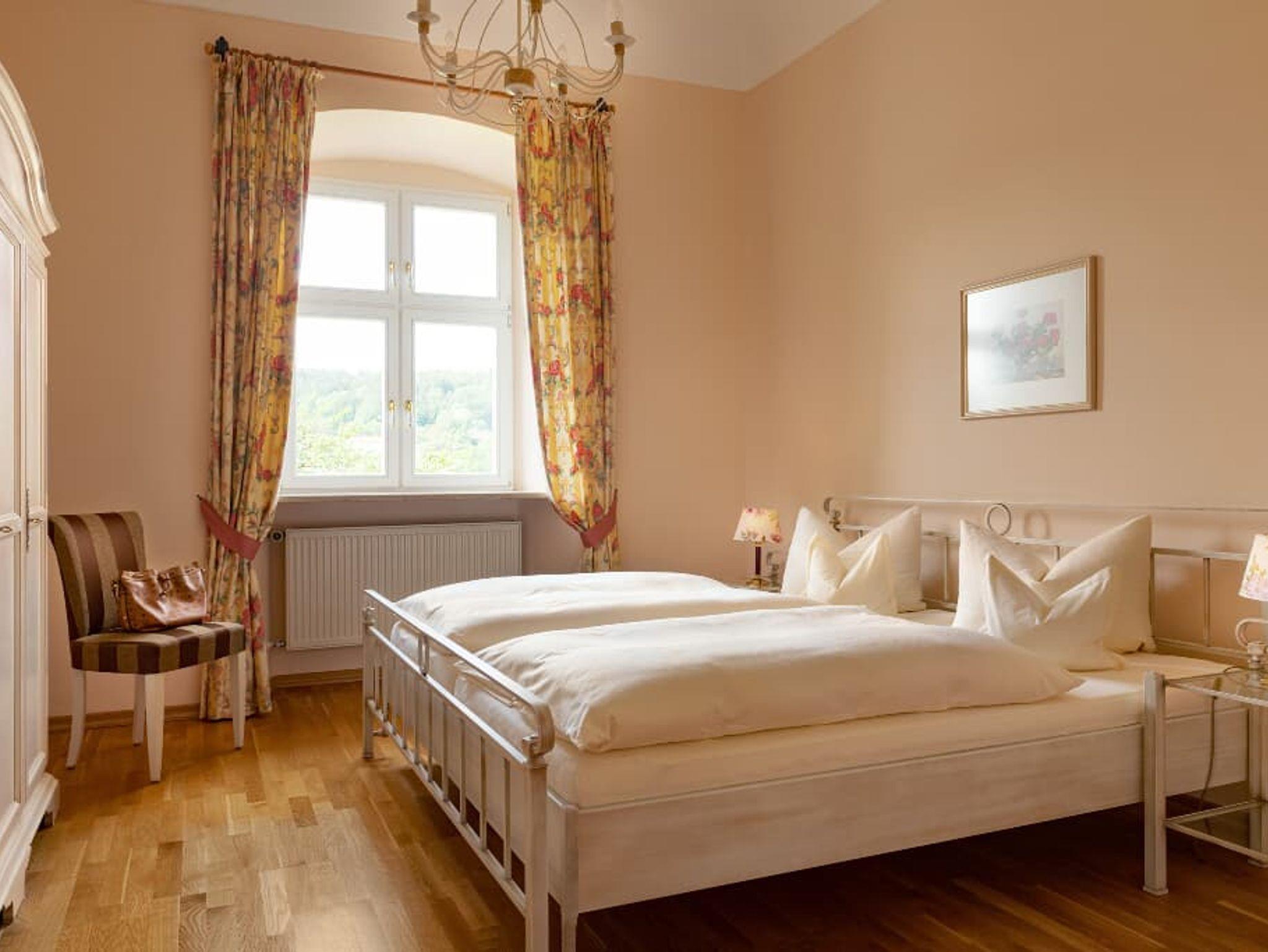 Exklusive Ferienwohnung, 70 qm, im ehem. Kloster St. Salvator,Schlaf- und Wohnzimmer getrennt, vollausgestattete Kochzeile mit Spülmaschine. Gerne bringen wir unseren Gästen frische Brötchen vor die Tür.