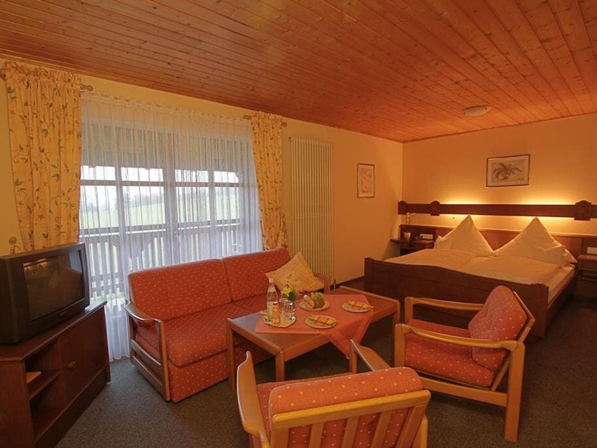 Schönes komfortables großes Doppelzimmer ( Neu renoviert im Frühjahr 2011) auch als Familienzimmer für zwei Erwachsene und 2 Kinder sehr geeignet. Dieses Zimmer ist mit Balkon oder Terasse und Blick in die herrliche Landschaft des Rottals. Die Bäder ebenfalls renoviert sind mit Dusche, WC, großem Spiegel und Fön ausgestattet. Zum Start in den Tag wartet auf Sie ein großzügiges Frühstücksbuffet in unserem Frühstücksraum oder Wintergarten.