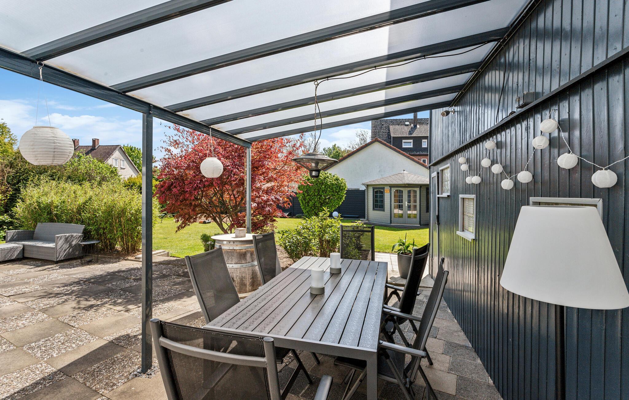 Træd ind i jeres ferielejlighed, der har plads til hele familien, og nyd den stilfulde indretning og den hyggelige stemning. Indtag jeres morgenkaffe på den overdækkede terrasse, omgivet af den velplejede have. Opholdsområdet giver gode muligheder for at samles med hele familien til samtaler om dagens begivenheder og sjove brætspil. Den åbne indretning skaber en behagelig stemning.