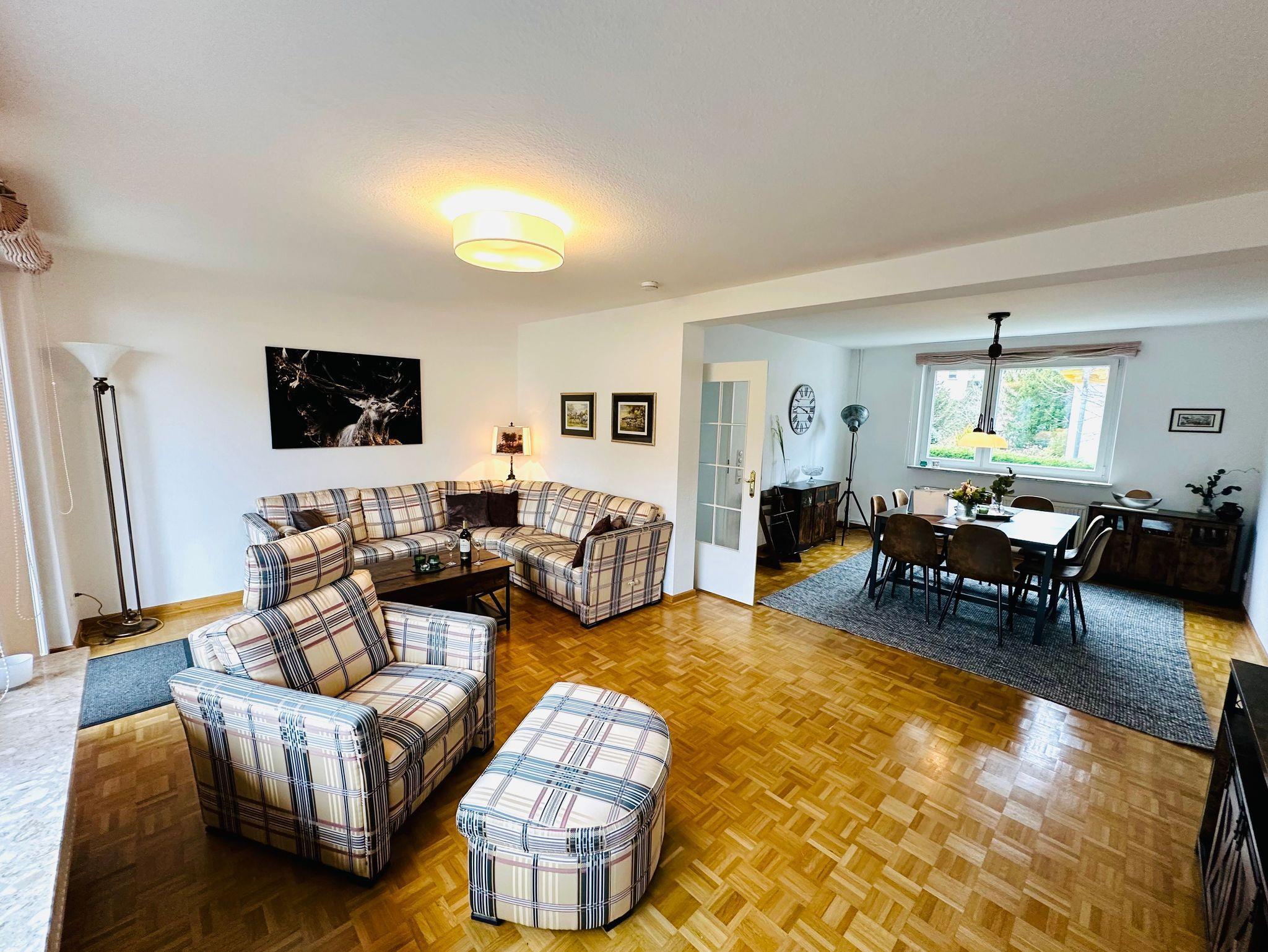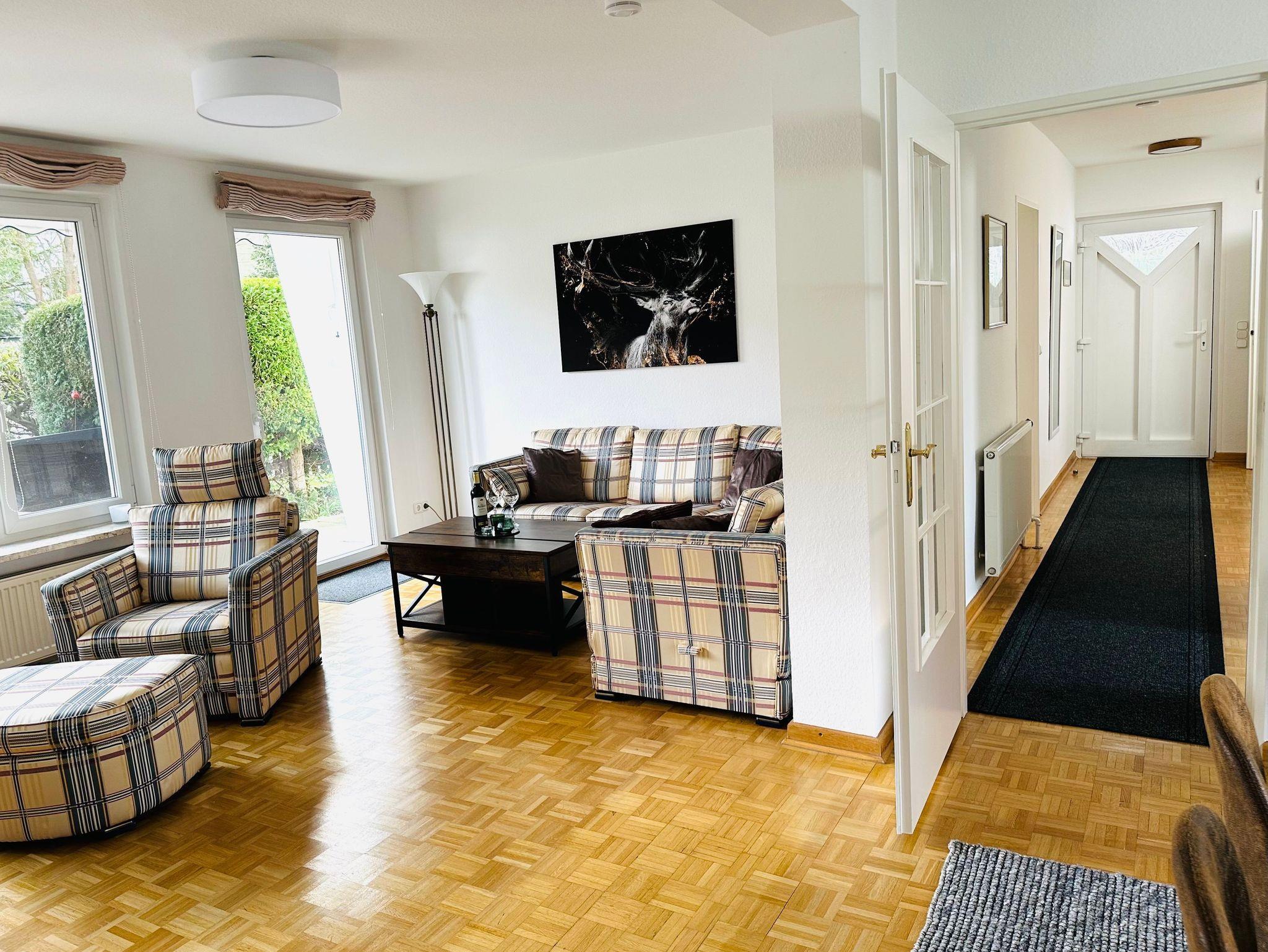 Das Ferienhaus Harzhausen bietet auf 140 Quadratmetern allen Komfort für einen angenehmen Aufenthalt. Im großzügigen und lichtdurchfluteten Wohnzimmer im Erdgeschoss finden bis zu 8 Personen Platz an einem Esstisch. Ein Kinderhochstuhl steht ebenfalls zur Verfügung. Auf dem Esstisch liegt unsere Willkommensbroschüre für Sie bereit, die alle wichtigen Informationen über Harzhausen, einschließlich Bedienungsanleitungen, Passwort für kostenloses WLAN, Parkplätze und vieles mehr, enthält. Das Wohnzimmer ist mit einem großen Fernseher, einem Radio mit Bluetooth- und CD-Funktion, einer Auswahl an Büchern sowie Gesellschaftsspielen ausgestattet. Die nach Süden ausgerichtete Terrasse grenzt direkt an das Wohnzimmer und bietet einen beeindruckenden Blick auf den Burgberg. Hier können Sie auf Gartenmöbeln entspannen.