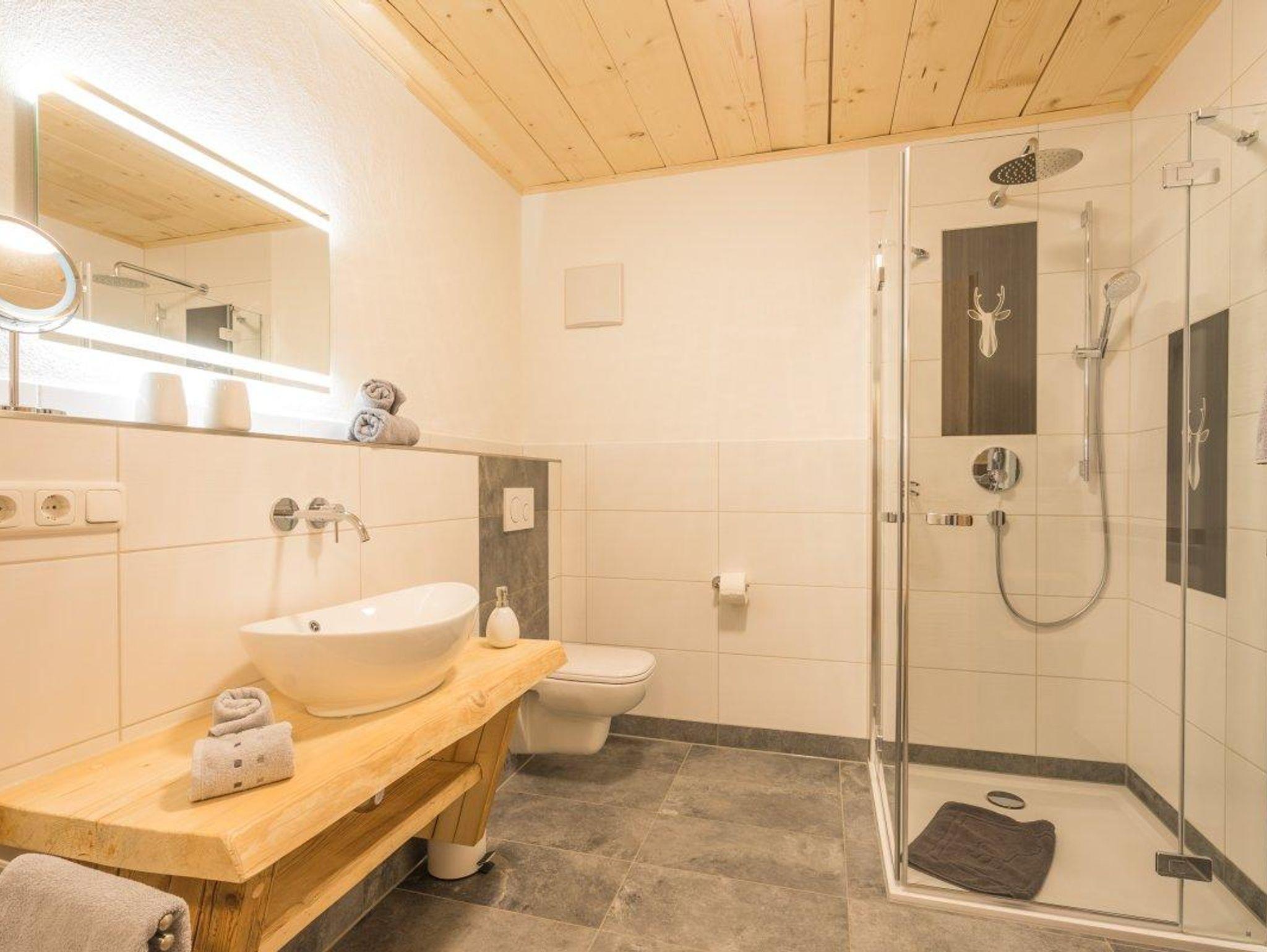 Unsere Wohnung Hirschstube **** 61 qm, ist ein gemütlicher Ort um zu entspannen und Ruhe zu genießen , sie ist im gemütlichem Landhausstiel eingerichtet und mit viel Holz und Elementen aus kostbarem Altholz kombiniert. Mit vollausgestatteter Küche, kuscheliger Wohnlandschaft, Bad mit Regendusche und sehr großem Schlafzimmer mit herrlicher Aussicht. Im Schlafzimmer ist auch Platz für ein drittes Bett. Auf ihrem eigenen Balkon können sie entspannt und die Sonne genießen.