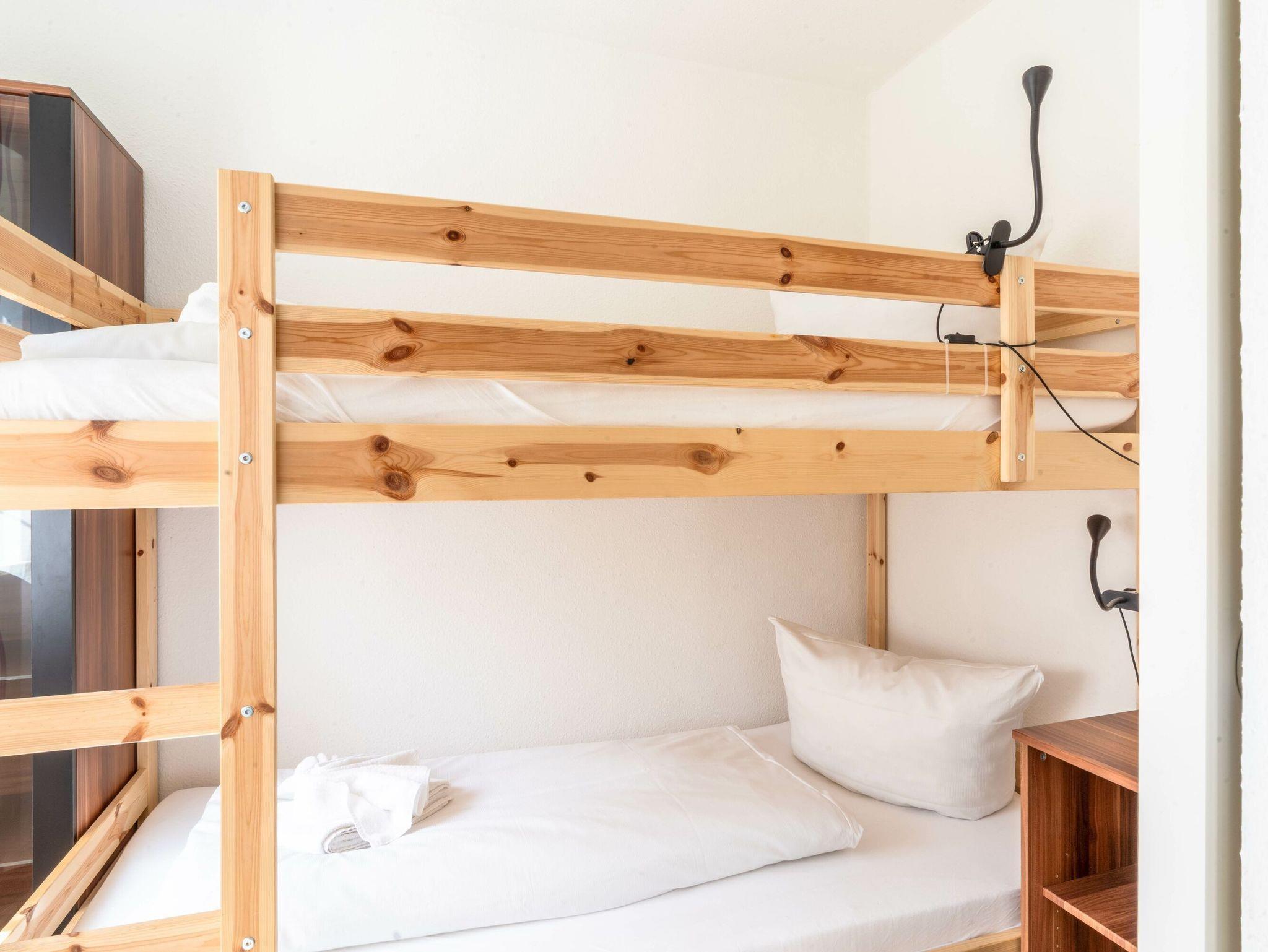 Die Wohnung bietet Ihnen den perfekten Rückzugsort für einen entspannten Urlaub. Sie ist komplett mit Vinylboden ausgestattet und verfügt über einen großzügigen Wohn- Schlafraum mit einem Schrankbett, der eine offene Küche und eine gemütliche Essecke beherbergt. Das separate Schlafzimmer bietet Ihnen erholsame Nächte in einem Stockbett, begleitet von einem großzügigen Kleiderschrank und einem Flachbildfernseher für Ihre Unterhaltung. Wenn Sie zusätzliche Schlafplätze benötigen, steht Ihnen ein bequemes Schlafsofa im Wohnzimmer zur Verfügung.