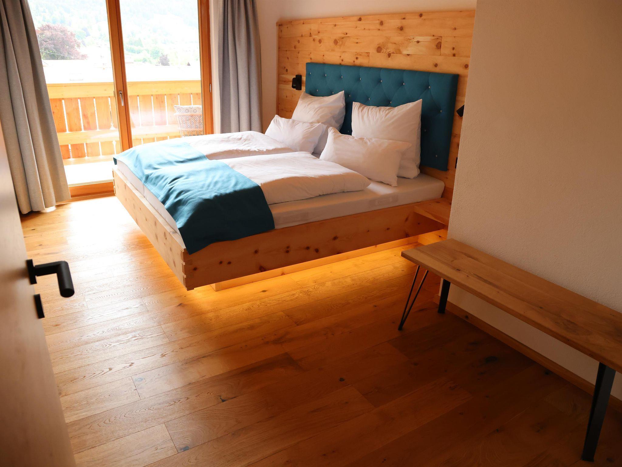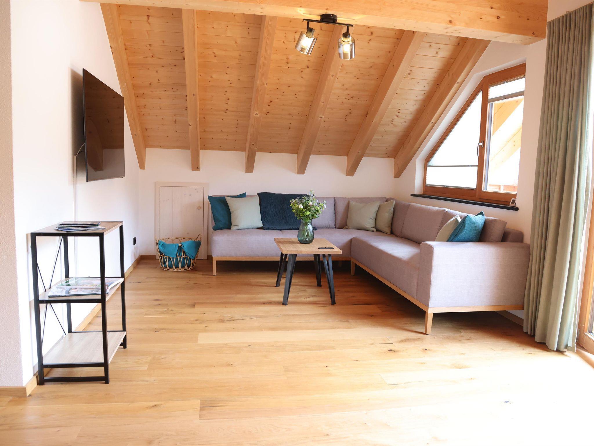 Unsere 5-Sterne-Ferienwohnung bietet auf über 100?m² modernen Komfort und alpinen Charme. Zwei Schlafzimmer – eins mit Zirbenholzbett, eins mit zwei Einzelbetten – sowie ein Bad mit Dusche, Wanne und separatem WC sorgen für Wohlgefühl. Voll ausgestattete Küche, Waschmaschine, WLAN, Fußbodenheizung und zwei Balkone mit Bergblick runden das Angebot ab. Ruhig und zentral in Bad Hindelang gelegen.