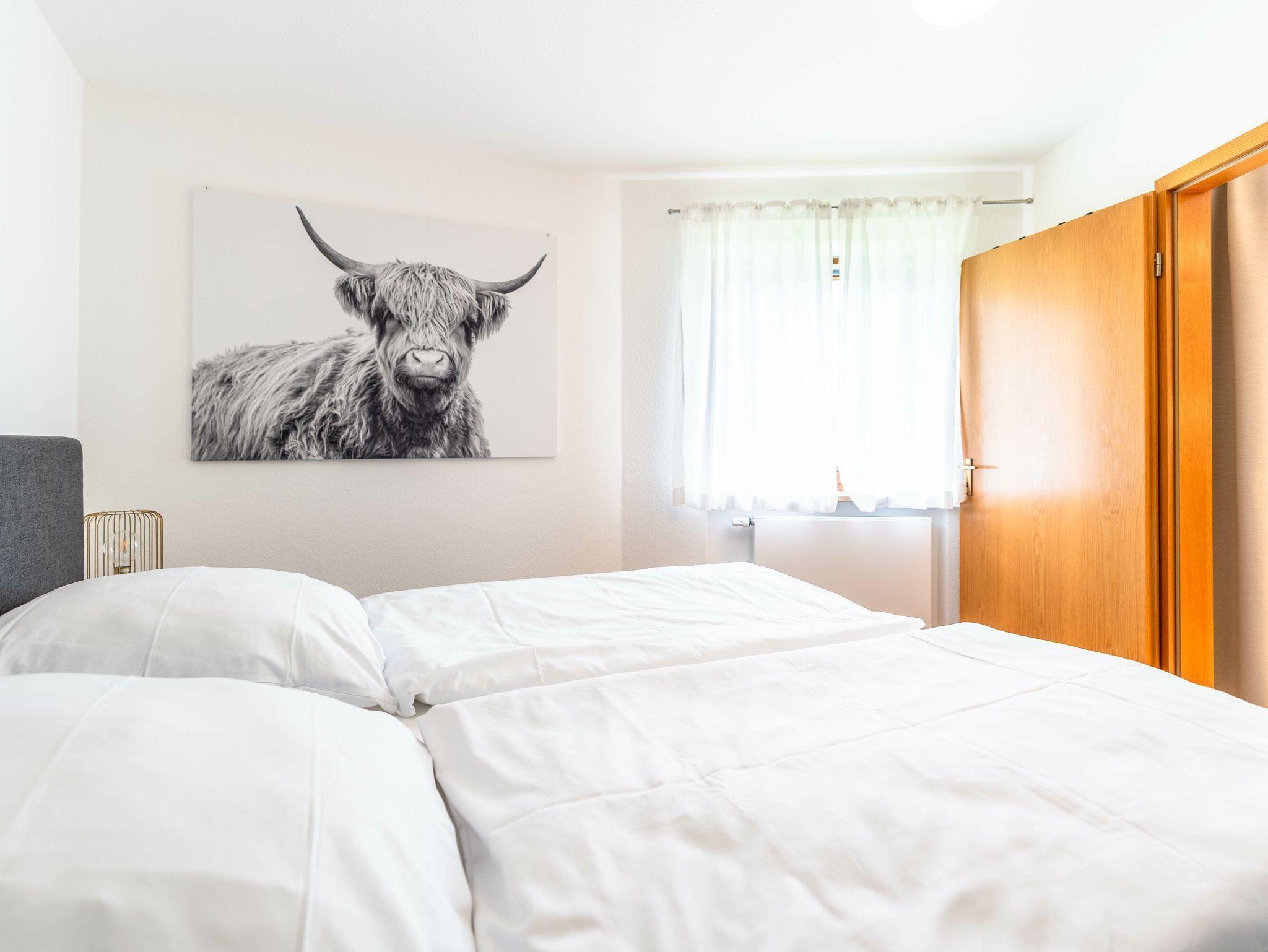 Die Wohnung bietet Ihnen den perfekten Rückzugsort für einen entspannten Urlaub. Sie ist komplett mit Laminat ausgestattet und verfügt über einen großzügigen Wohnraum, der eine offene Küche und eine gemütliche Essecke beherbergt. Das separate Schlafzimmer bietet Ihnen erholsame Nächte in einem komfortablen Doppelbett sowie einen großen Kleiderschrank.