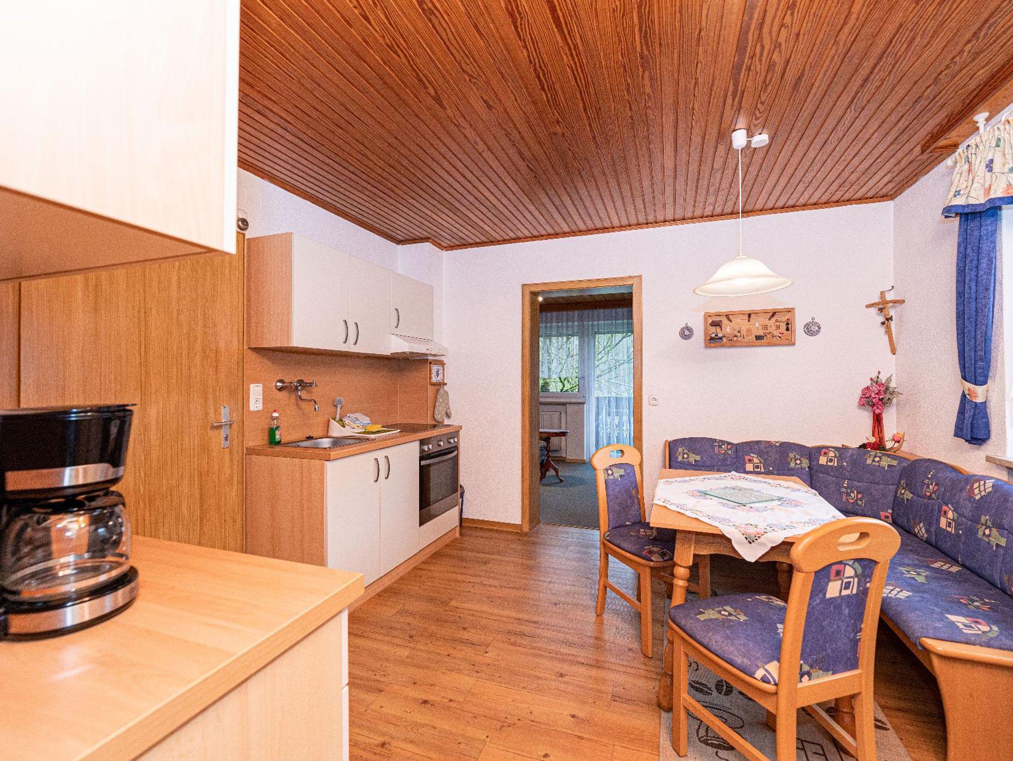 Ferienwohnung - Austragsstüberl (44 qm) für zwei Personen: Die Ferienwohung mit einem Wohn-/Schlafzimmer (Doppelbett), Sitzgarnitur, Sat-TV und Radio, Wohnküche mit Eßecke und Küchenzeile (Mikrowelle, Kaffeemaschine, Wasserkocher, Toaster, Ceranfeld, Backofen). Badezimmer mit Dusche und WC, Balkon. Bettwäsche und Handtücher werden gestellt. .