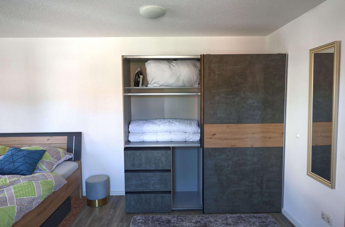 Ein besonderes Plus: Eine Aufbettung für einen Kind ist möglich. Ein praktisches Klappbett steht auf Anfrage zur Verfügung und kann flexibel im Schlafzimmer aufgestellt werden.