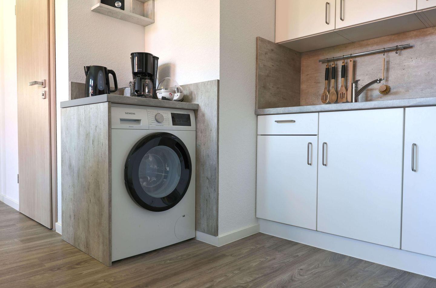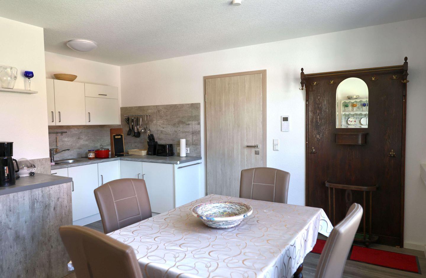 Die rundum neu gestaltete Ferienwohnung vereint ländlichen Stil mit zeitgenössischer Wohnlichkeit. Vom Eingangsbereich gelangen Sie direkt in das Esszimmer mit angrenzender Küchenzeile, die über alle wichtigen Kochutensilien verfügt. Die kleine, aber feine Küche ist perfekt ausgestattet – ob für ein ausgiebiges Frühstück oder ein gemütliches Abendessen. Ein Nahkauf-Supermarkt befindet sich nur 100?m entfernt und macht die Selbstverpflegung besonders bequem.