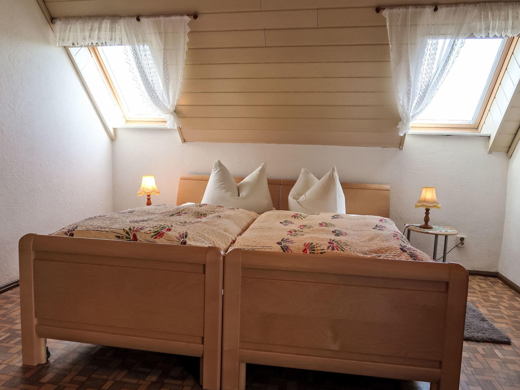 4-room semi-detached house 65 m2 on 2 levels, on the ground floor. Practical furnishings: living/dining room with dining table and cable TV (flat screen), radio. Kitchenette (4 hot plates, oven, toaster, kettle, microwave, electric coffee machine). Shower/WC. Upper floor: 1 room with sloping ceilings with 2 beds. Walk-through room with 1 double bed. Exit to the balcony. Electric heating. Balcony, terrace. Terrace furniture, balcony furniture, deck chairs (2). Facilities: baby cot. Internet (WiFi, free). Parking (2 cars). Please note: non-smoking house. Maximum 1 pet/ dog allowed. Private entrance, smoke alarm. Access to the room with 2 beds through the double bedroom. Electric radiators in the bathroom.