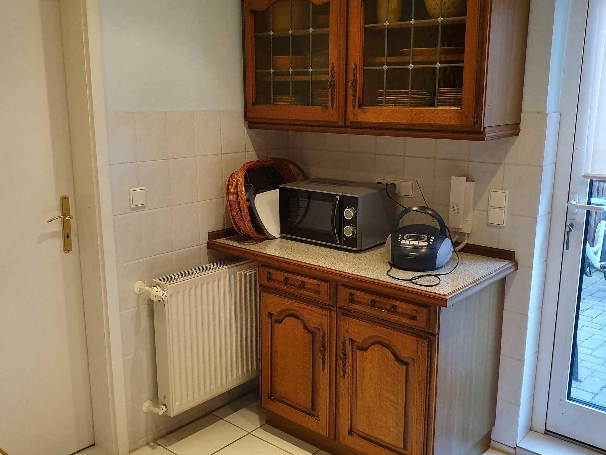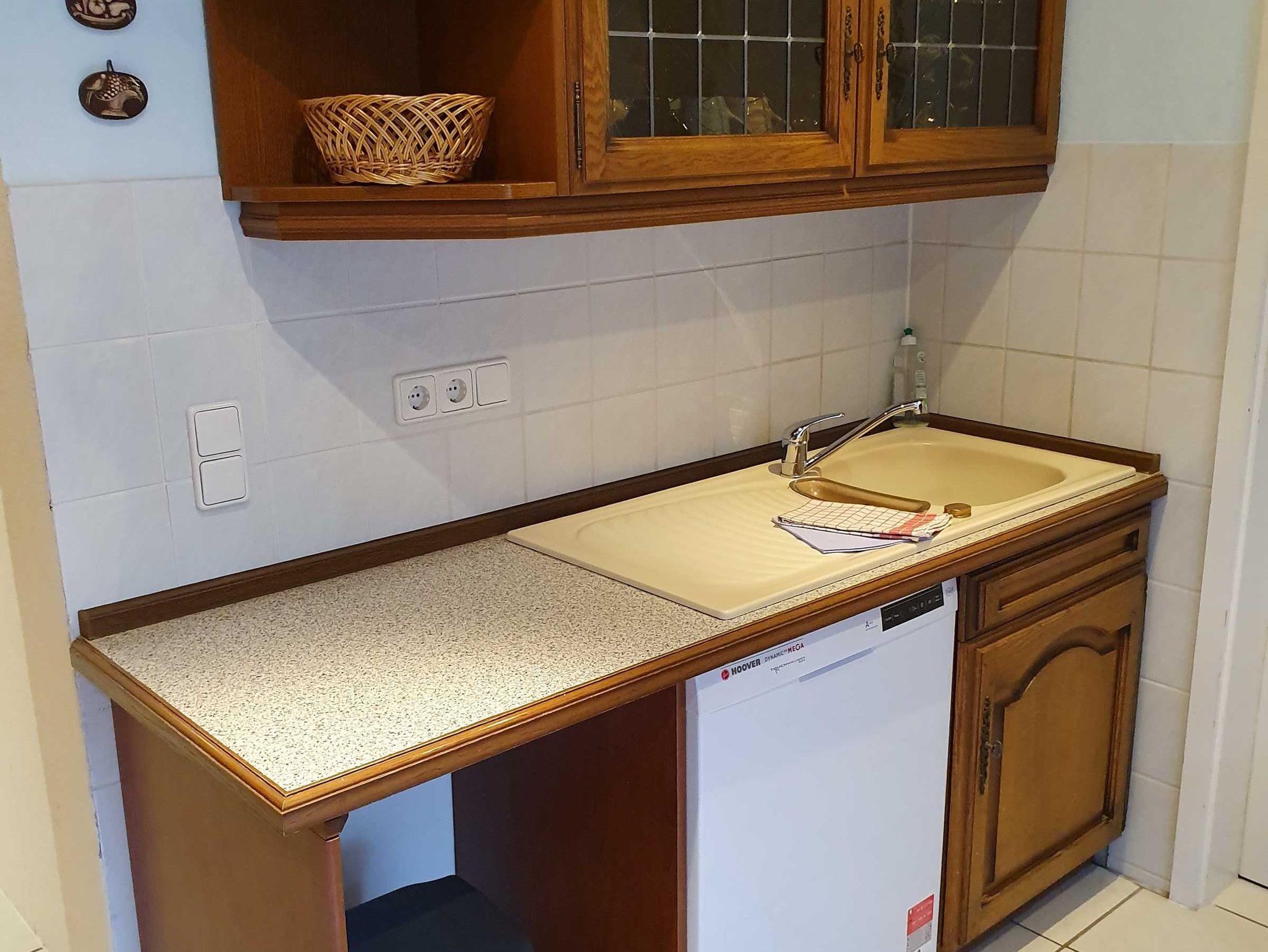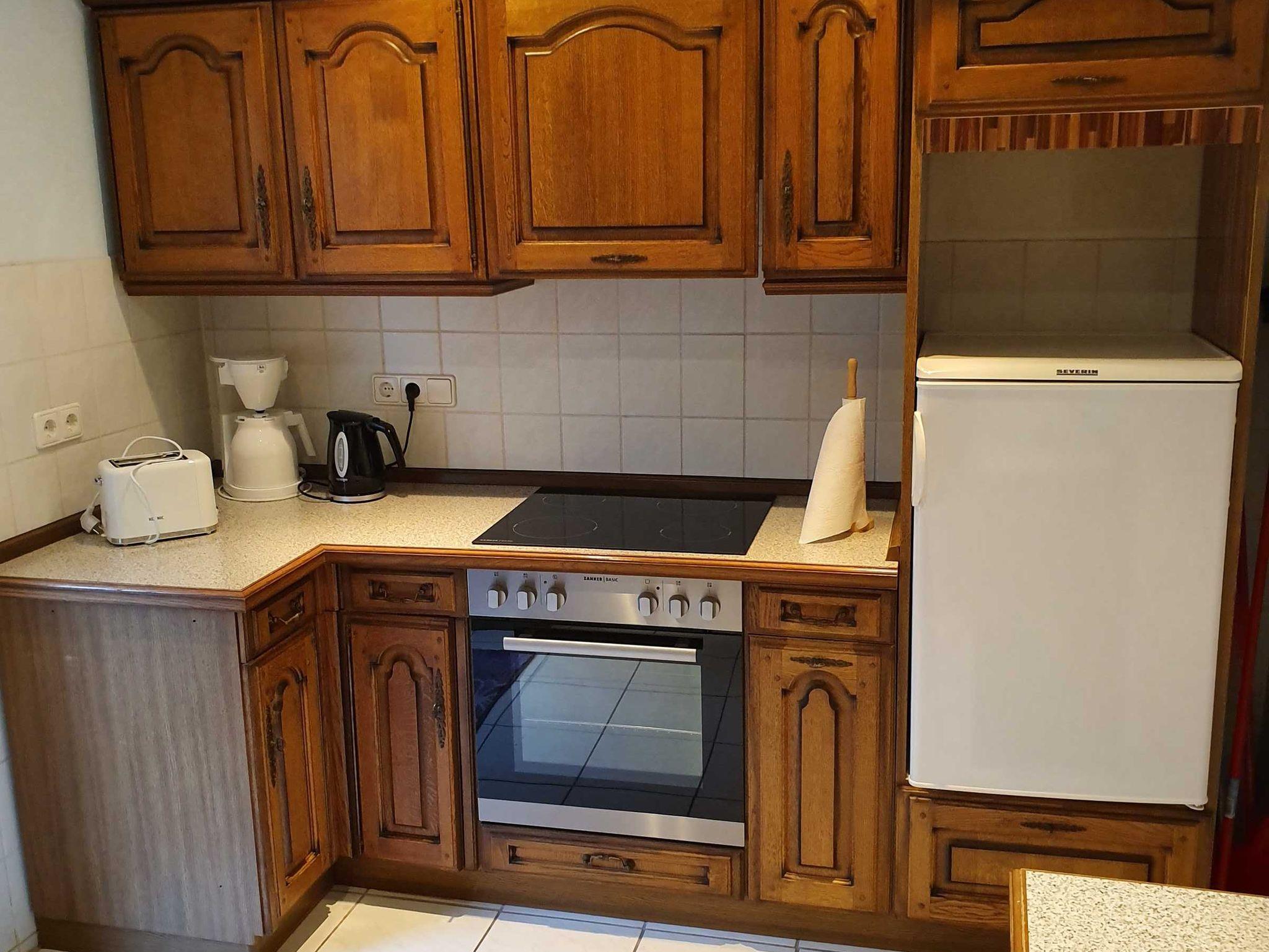 -Küche: Voll ausgestattet mit Kaffeemaschine, Toaster und den wichtigsten Utensilien für Ihre Selbstversorgung.