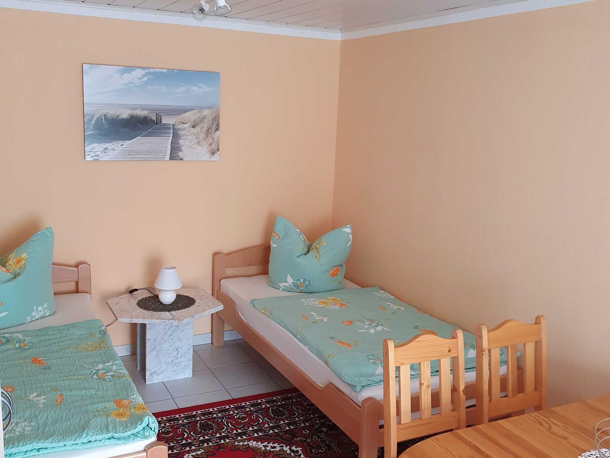 -Schlafzimmer: Ein komfortables Zimmer mit Doppelbett sowie ein weiteres mit zwei Einzelbetten.