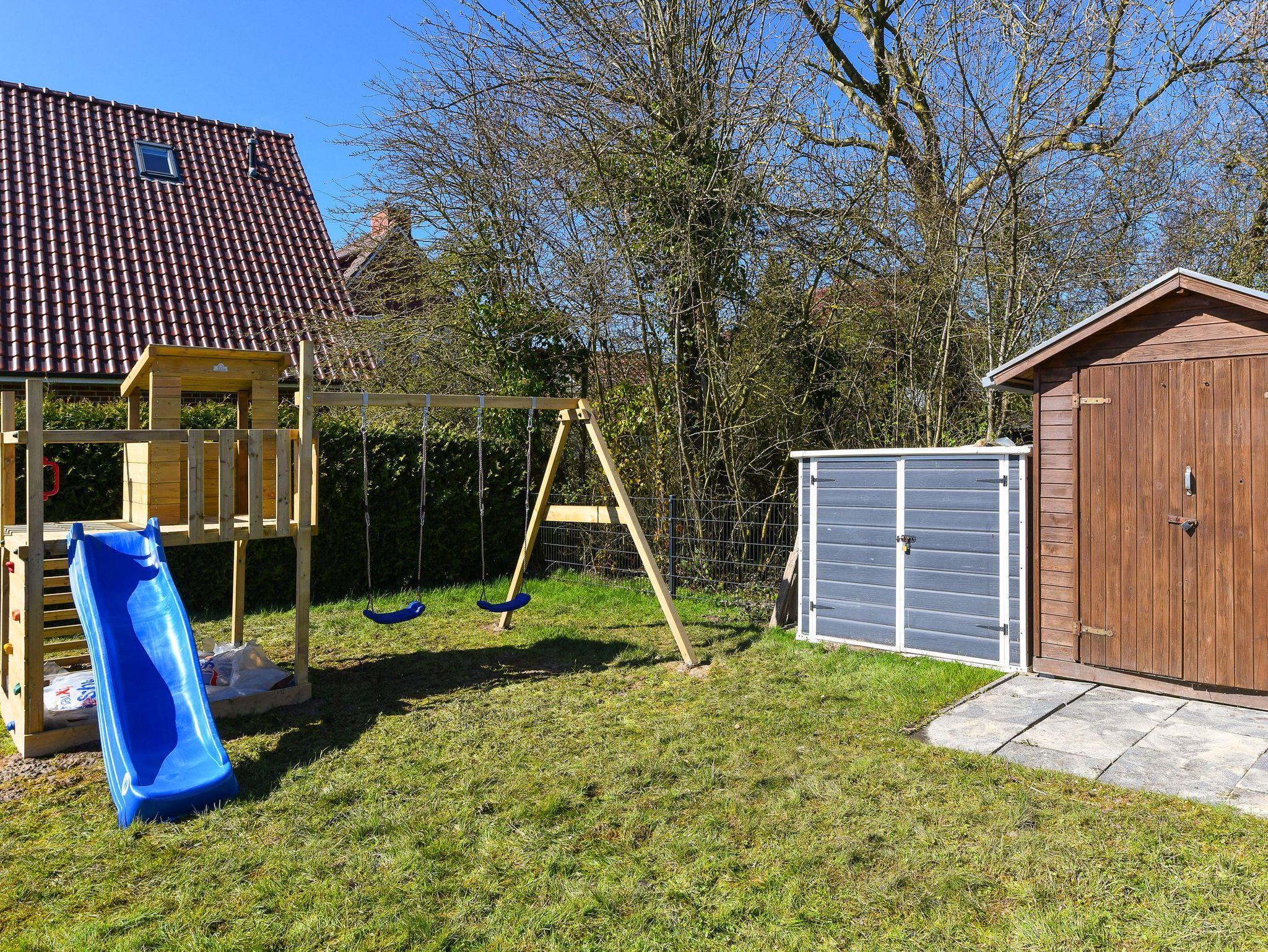 Im Garten gibt es einen tollen Spielturm für Kinder.