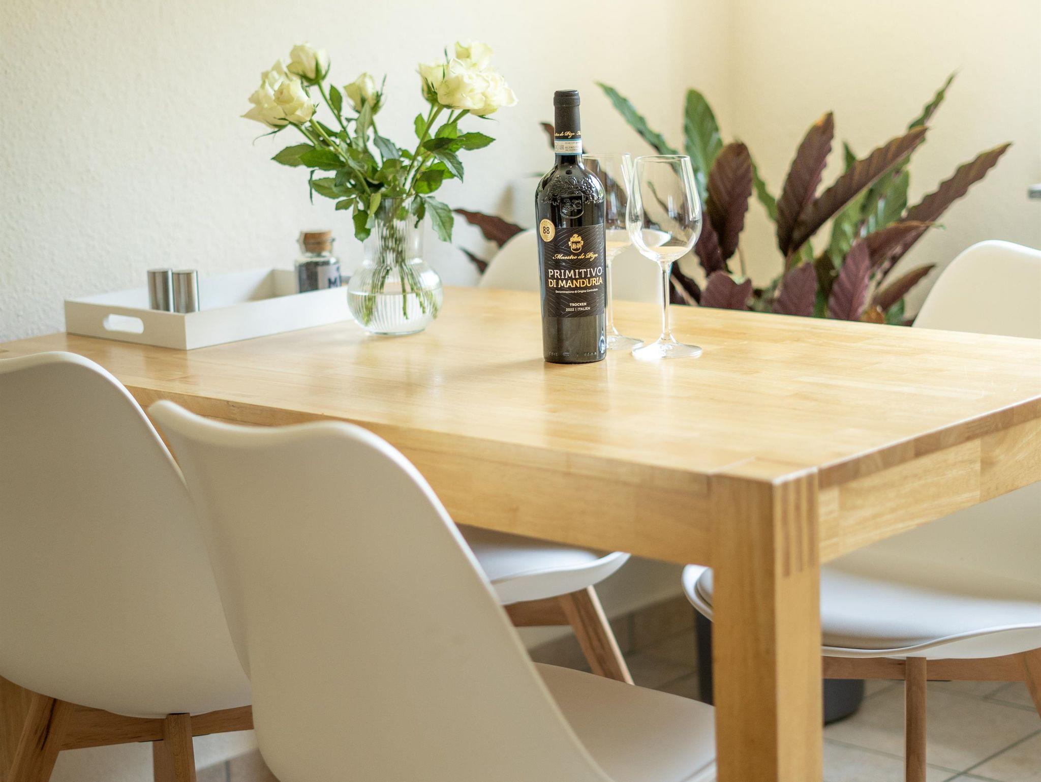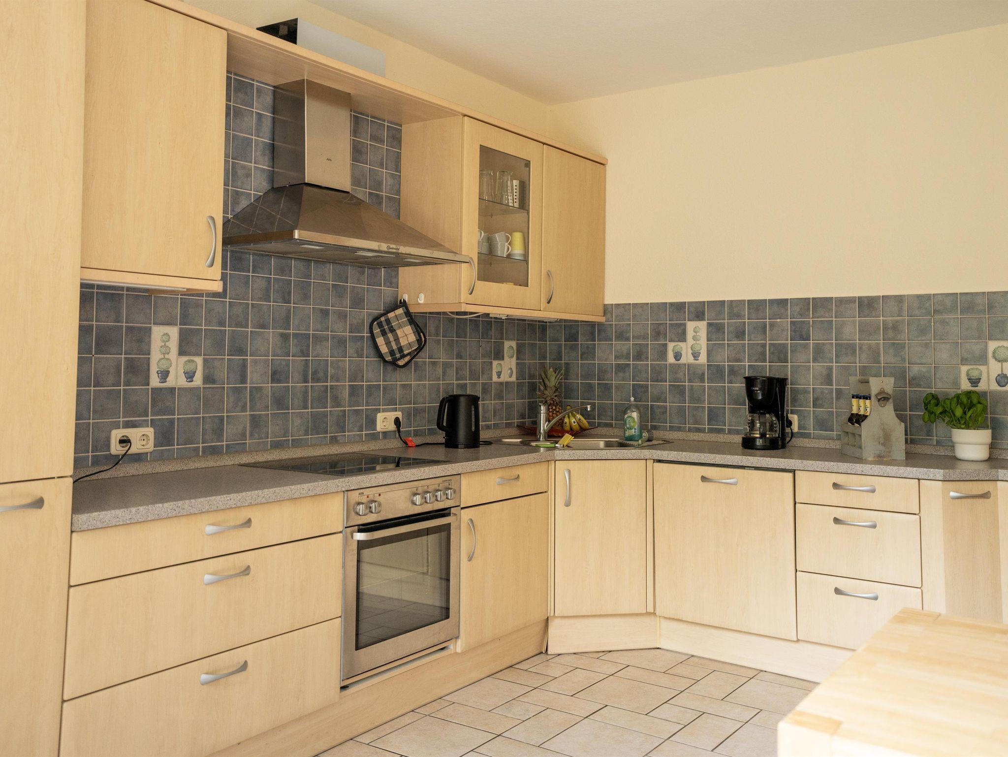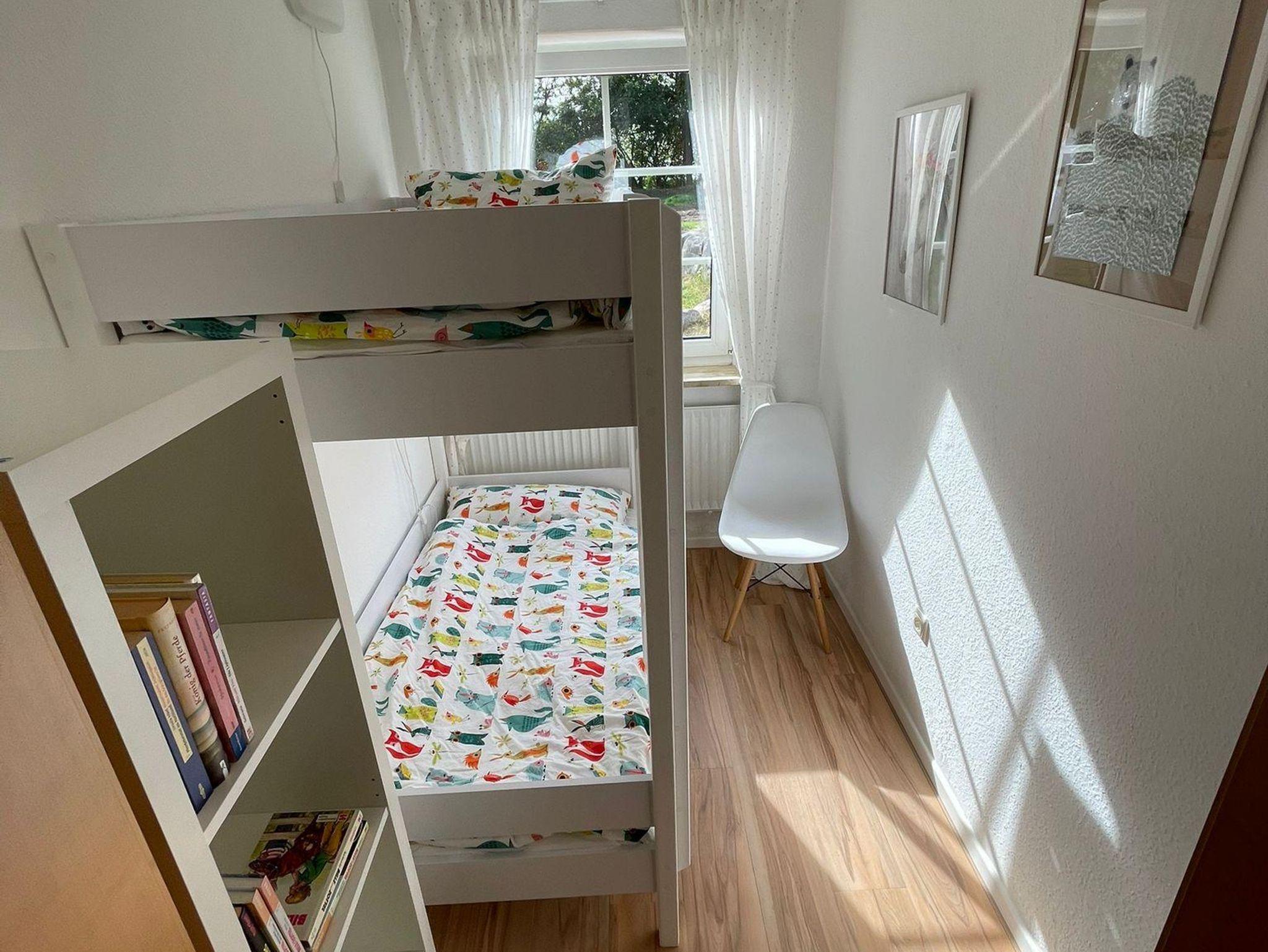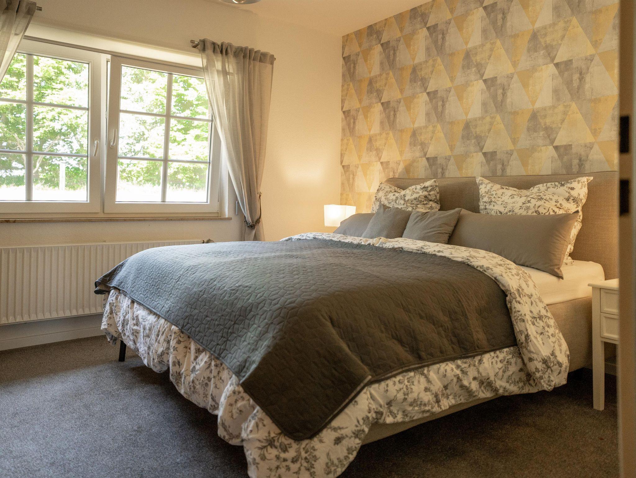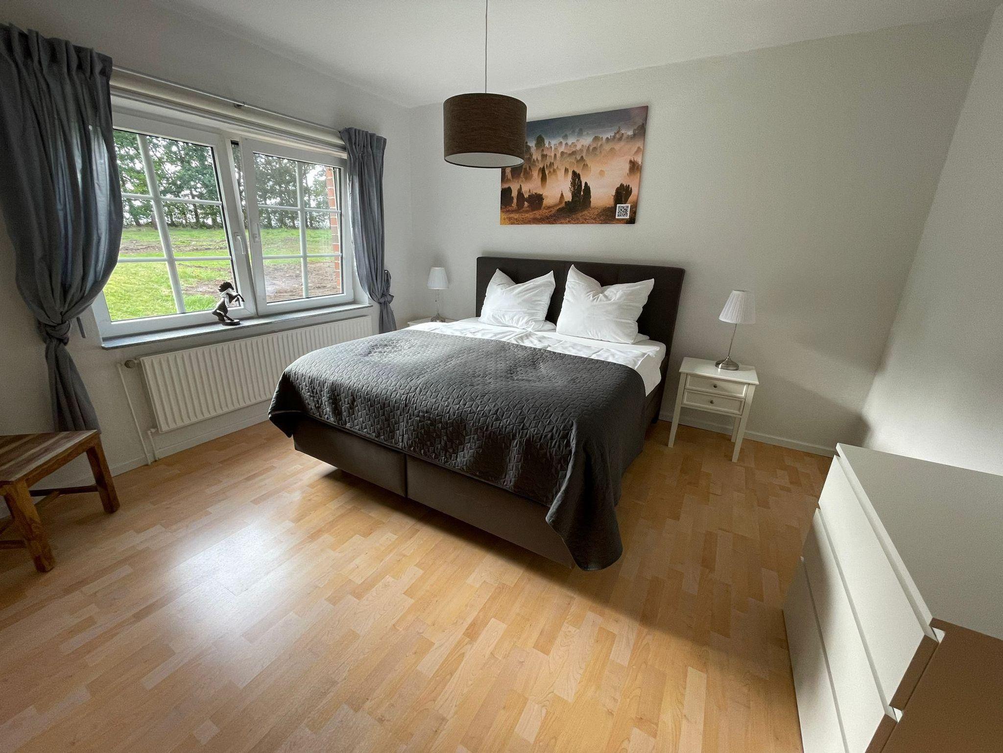 Die Wohnung wurde kürzlich renoviert und mit hochwertigen Betten ausgestattet: Eines der beiden Schlafzimmer verfügt über ein Boxspringbett, das andere über ein Polsterbett. Ruhig am Hang gelegen, genießen Sie außerdem einen idyllischen Blick auf das charmante Reetdachensemble.