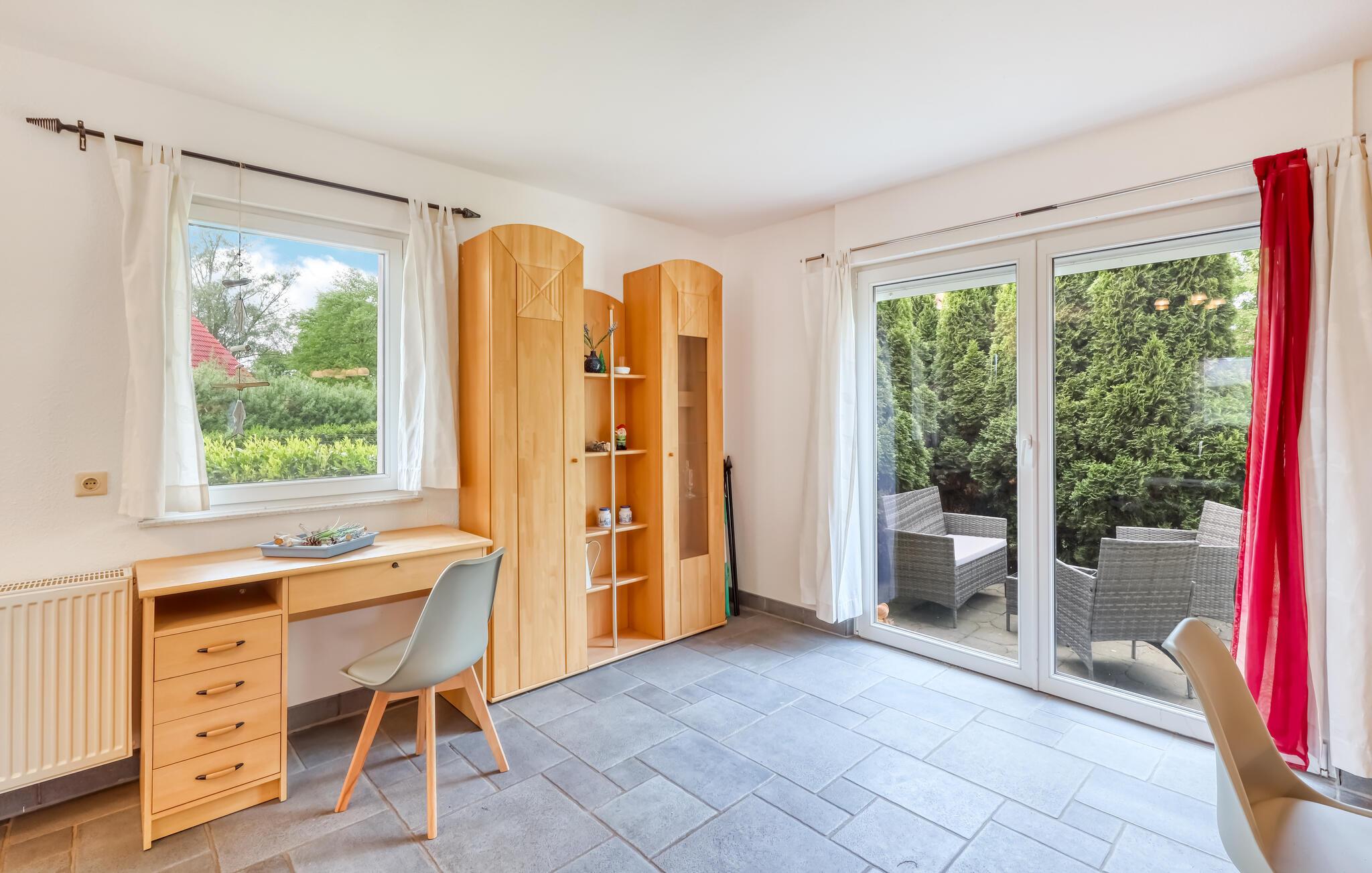 Velkommen til dette dejlige hus i Boiensdorf, hvor I som lille familie får en skøn base for mange fine udflugter. Stueetagen er nydeligt indrettet med velholdte klinkegulve, fin kunst på væggene og et komfortabelt møblement, der gør det nemt at sænke skuldrene og slappe af efter dagens muntre leg. Tilbered en lækker aftensmad i det veludstyrede køkken, nyd maden ved spisebordet med udsigt til haven, og rund aftenen af i sofaen med en god film, mens I lægger planer for de kommende dage.
