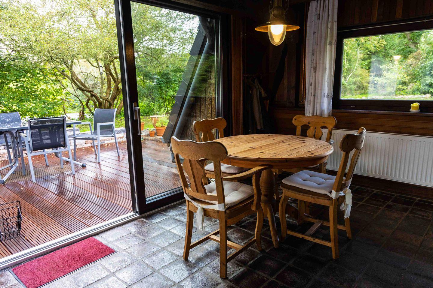 Der offene Wohn- und Essbereich lädt zum Verweilen ein, mit einem Esstisch, Sofa, Sessel, Kaminofen, Kommode und Garderobe. Die voll ausgestattete Küche bietet alles für den perfekten Kochgenuss: Induktionskochfeld, Backofen, Kühlschrank mit Gefrierfach sowie zusätzlichem Gefrierschrank, Spülmaschine, Kaffeemaschinen (Filter- und Kapsel), Wasserkocher, Toaster und Handrührgerät.