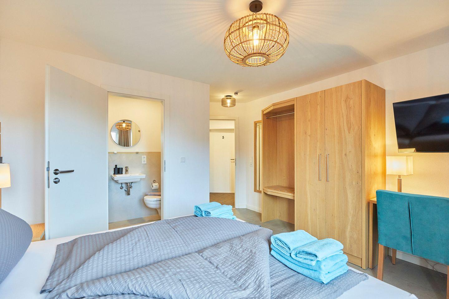 Das moderne Appartmenthaus Antina bietet sechs gemütliche Zimmer für jeweils zwei Personen. Jedes Appartment verfügt über ein Duschbad mit bodentiefer Duschtasse und eine kleine Teestation mit Wasserkocher. Die hochwertigen Boxspringbetten versprechen erholsame Nachtruhe. Bettwäsche, Handtücher und Endreinigung sind im Mietpreis inklusive.